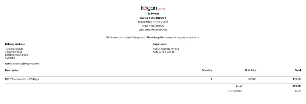 Kogan Australia Membership $99 Kogan subscription