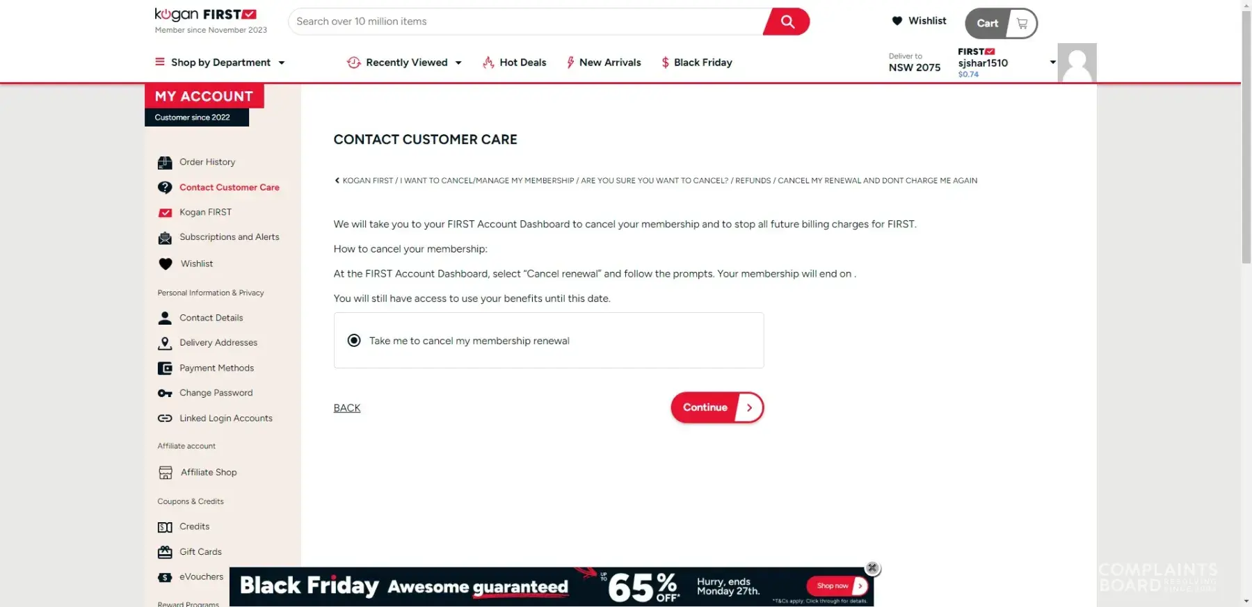I cancelled my Kogan First account months and months ago, but my wife has just had the annual fee of $99 taken out of her account. I have logged into my account and the status is not active.