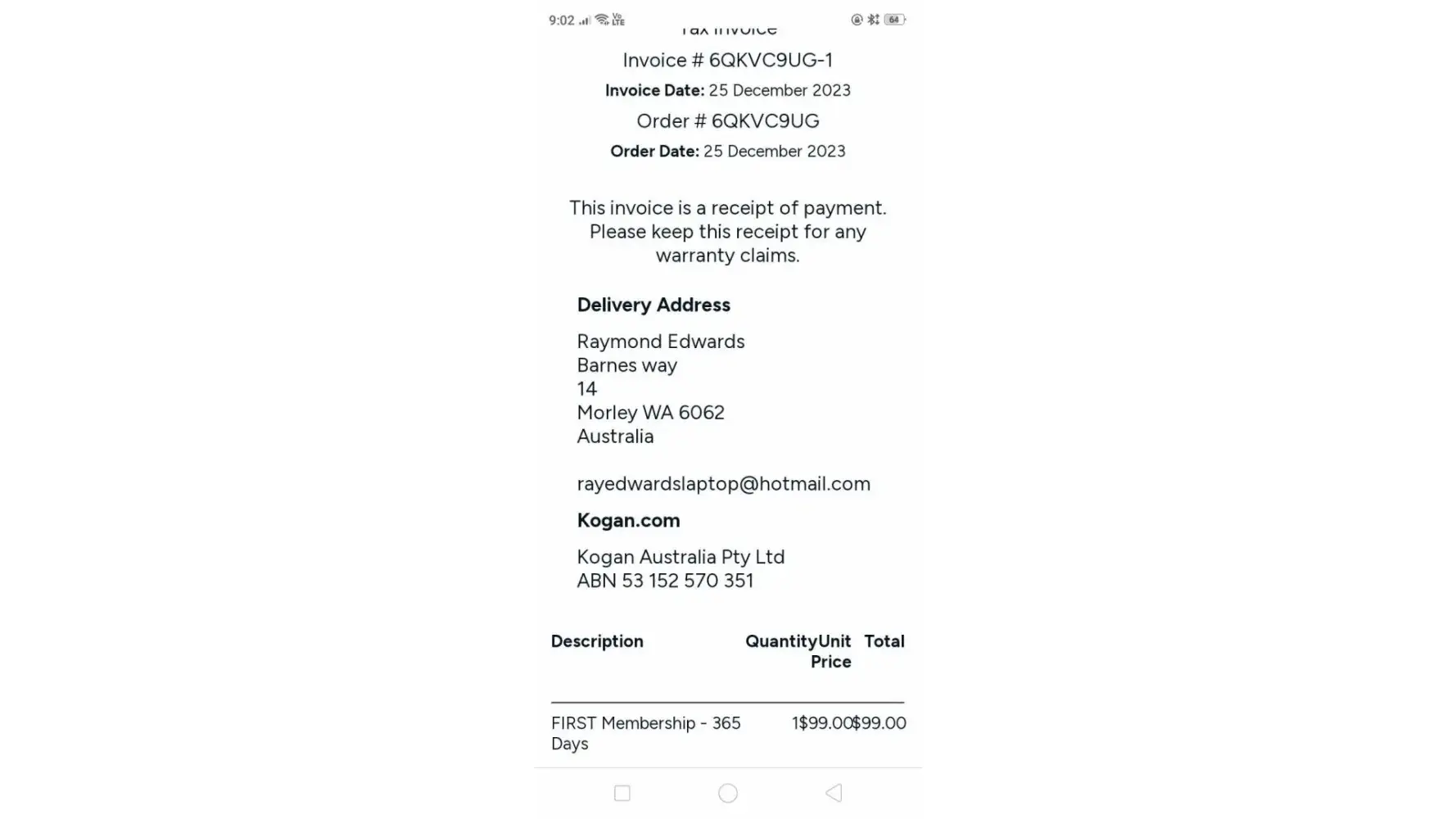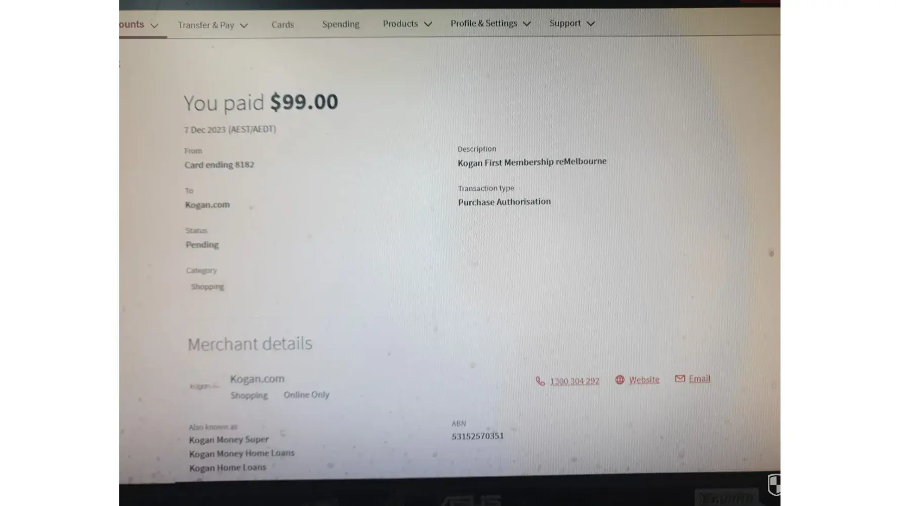 Kogan Australia Charges to my credit card