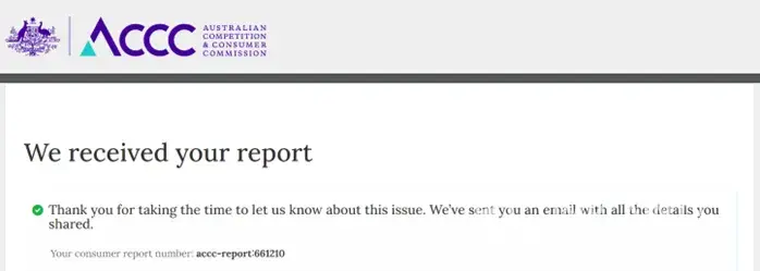 I have reported the issue and the company to the ACCC.