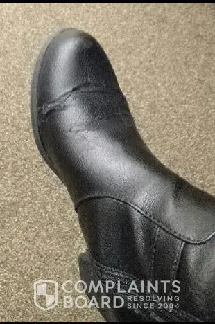 My daughter bought a pair of women's black ankle boots for me and I wore them three times and this is what the right shoe looks like already! The left foot is still in good condition, but as you can see, the vinyl or whatever the "coating" in the shoe is, is peeling off! There's no way I can fix this! She doesn't have the receipt so I can't return them to the store, but I feel horrible that she wasted do much money on a useless, cheaply made gift for me. I have shoes like these from a different manufacturer, tat I have worn for almost three years and are just now beginning to show creases on the top of the foot. But the material isn't peeling! Shame on you!
