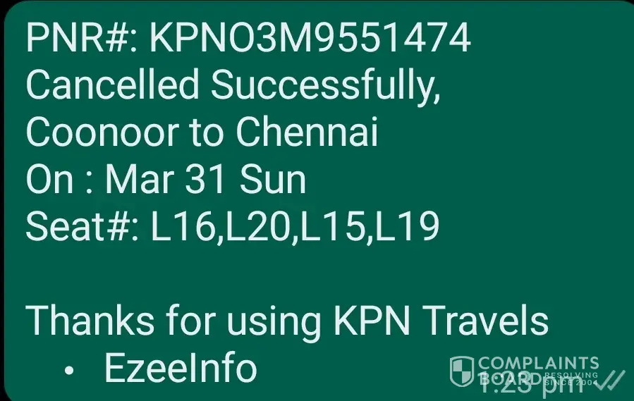 I did booked Chennai to Salem and PNR No: F343365159. One of the KPN person called and said the bus will not be coming as the bus has the problem so he said the money will be refunded to my account. All of sudden the driver called me at 11:30 and asking me whether I am coming or not as the bus is waiting for me. This is rediculous. Since the person said the bus will not be coming and he also told me not to do anything from my end. KPN will initiate the refund process through the app I booked. I booked my ticket through Railyatri and they did not process my refund. Seriously this is very rediculous. I am regular traveller usin KPN but I never expected this. I want my money back. I have recording what the person told. Please do something or else I will definitely sue you guys in consumer court.