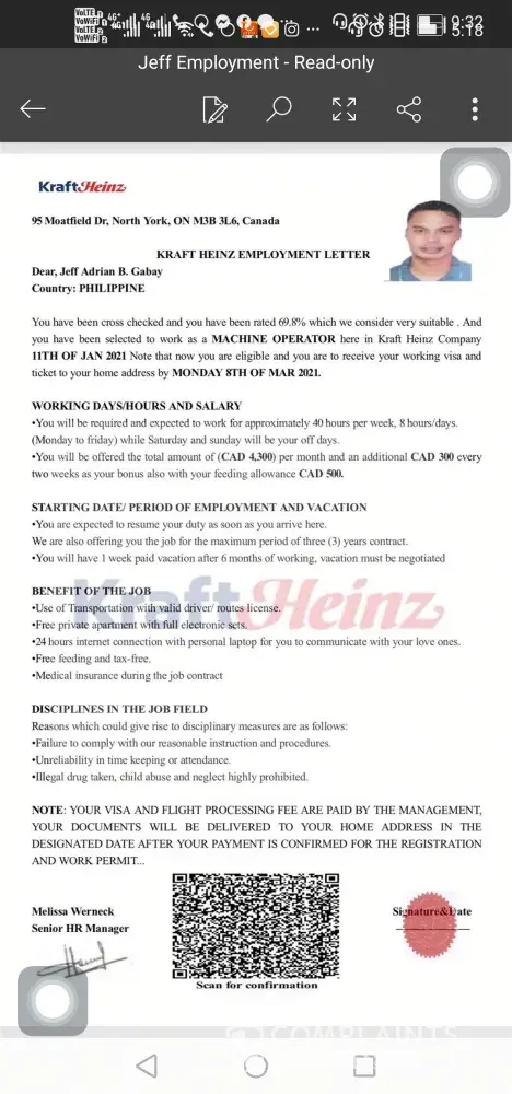 Hello good day. Im jeff. Actually i dont have any complain on this company. I just want to ask and verify thrse photo that i will send are legit or fake. Im really serious in finding a job but i dont know if this is legit or fake. Hopefully you can clarify this to me. Please help me. Thank you