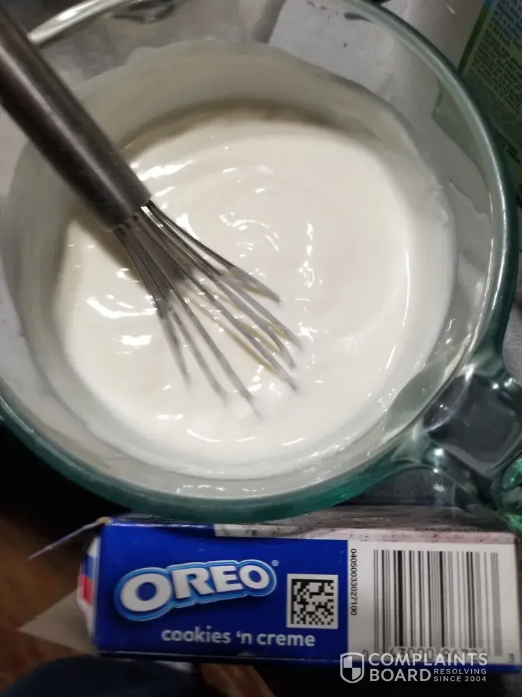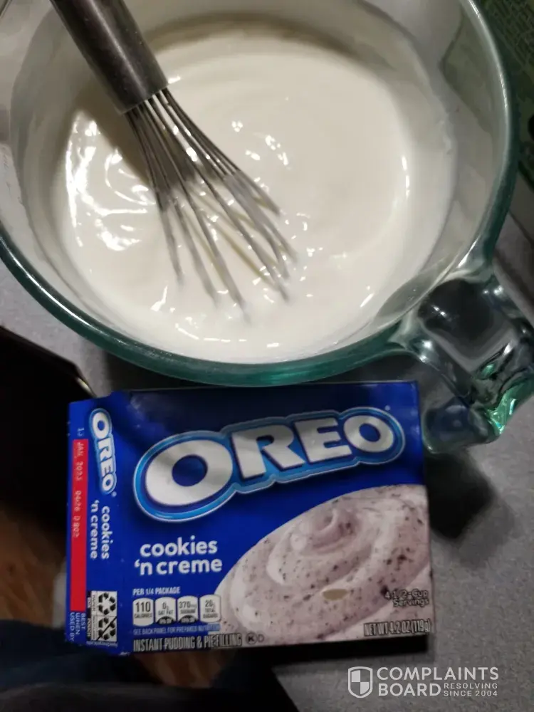 This one is different from the others that I have had. There is nothing that looks or tastes like Oreos in it. Just white pudding. It is still very tasty and it turned out exactly like the others I have had, it just didn't get any Oreo bits in it.