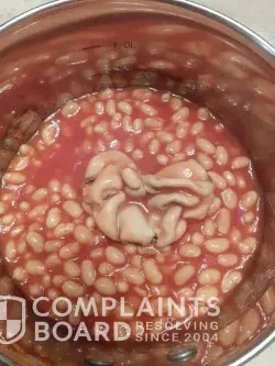 I opened a multipack of 4 x 415g cans of Heinz baked beans and noticed a small dent to the top edge of the can and a small juice stain on the lid (see photo1)