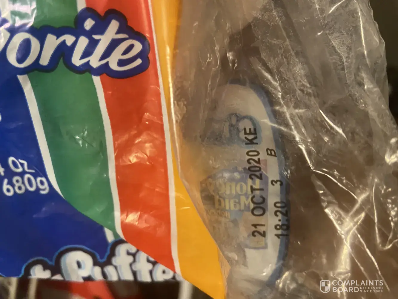 On 1/3/2021 I went to walmart and bought a bag of marshmallows for our family annual backyard roasting crafts.. It was postponed so when I look at them today they are wet looking sticky and yellowish the date says 21 october 2020 ke 18:20 3 b so they were out dated! My name is samantha buckner and my address is - 1920 w tarrant rd apt31b, grand prairie tx 75050 I bought the product from walmart 2650 state hwy 161 grand prairie, texas