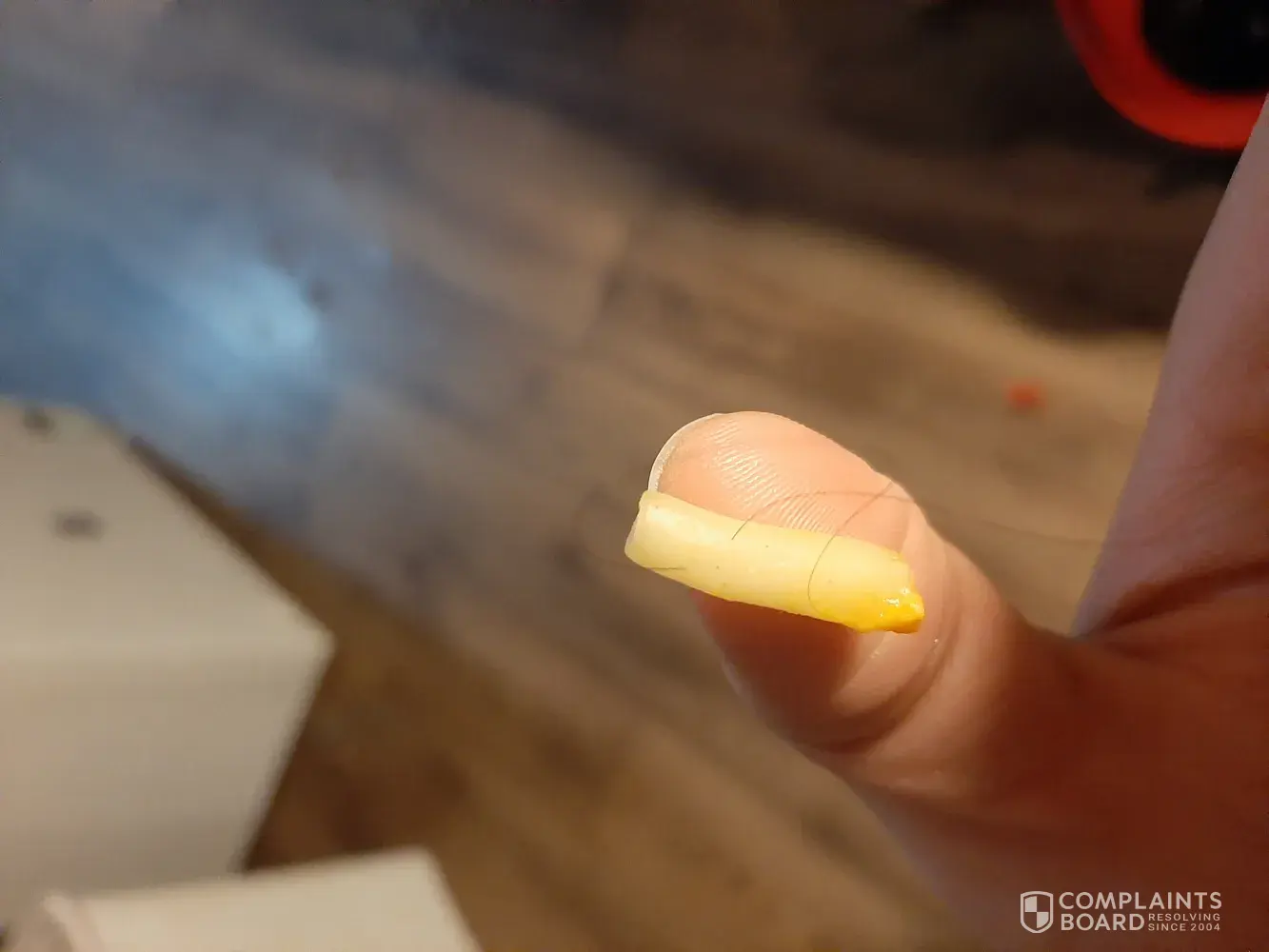 Upon making my salad, I used your salad dressing. I used about a tablespoon. I shook the bottle vigorously. See red speck didn't alarm me cause I thought it was part of the spices for flavor. I bit into a piece of red plastic. Hurt my molar... There was nothing else in the salad that would require red colors. The salad was prepared at home so the only outside element was the salad dressing