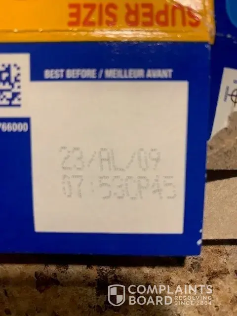 Find attached the box top of one from a case of your product to evidence the lot and date of the product. Picture one - "May-22 10 MIT [protected] 05/15/2022" Picture two - "23/AL/09 07:53CP45"