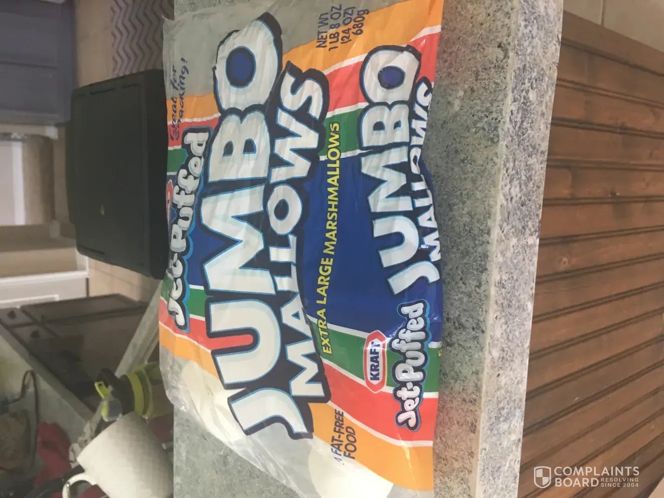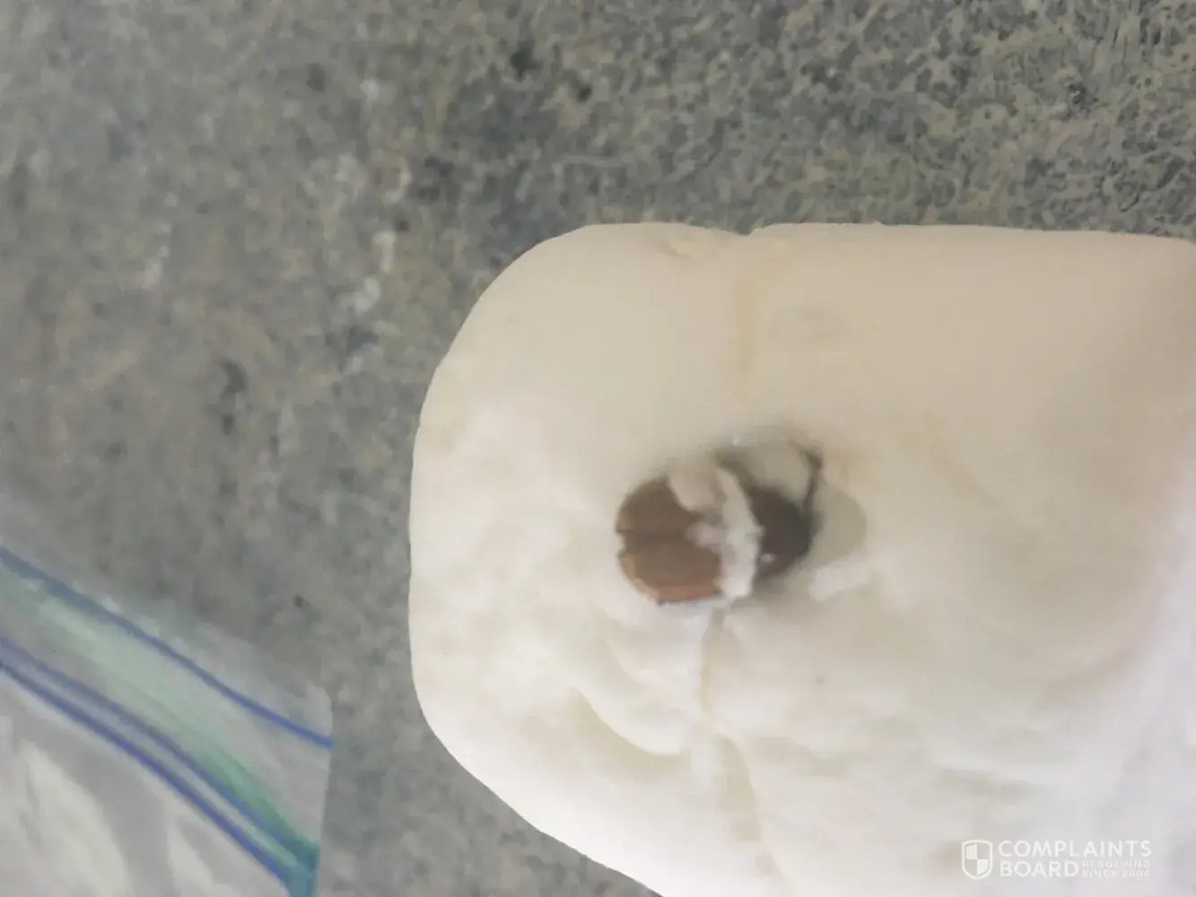Opened a brand new bag of the jumbo marshmallows and the second one I pulled out to put on a skewer for my 4 year old grandson to take outside to toast has a bug buried in it!