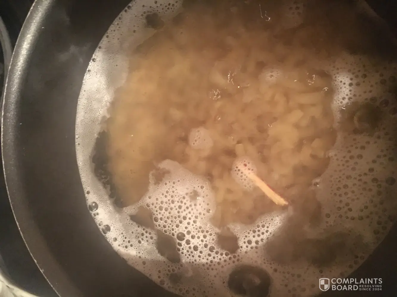I purchased a bulk box at Sam's club for my son's lunch. I am down to the last 2 cups and found some black chunks in it. Not sure if it came from the cheese packet or the pasta. Some of them were hard chunks some were soft and squishy. My son loves the cups for lunch and has tried every shape there is and this is the first of such experience I have had with your product. Thank you very much