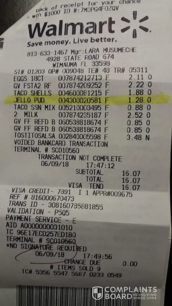 I purchased a box of JELL-O Chocolate Flavored Sugar Free Fat Free Pudding from Walmart at 4928 State Road 674, Wimauma, FL 33598 on June 9, 2018. The box was perfectly sealed, but when opening it the package inside containing the pudding was wide opened. This is the second box I purchased where the inside package was opened (apparently not properly sealed). The first time was a few weeks ago and I returned it to the store. Since this is the second package I found this way I feel I should bring it to your attention. I have attached a copy of the store receit for that day.