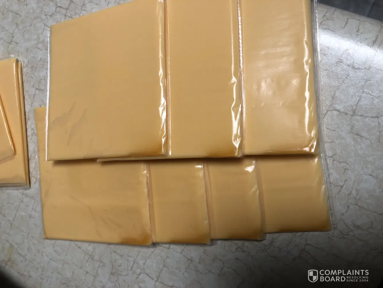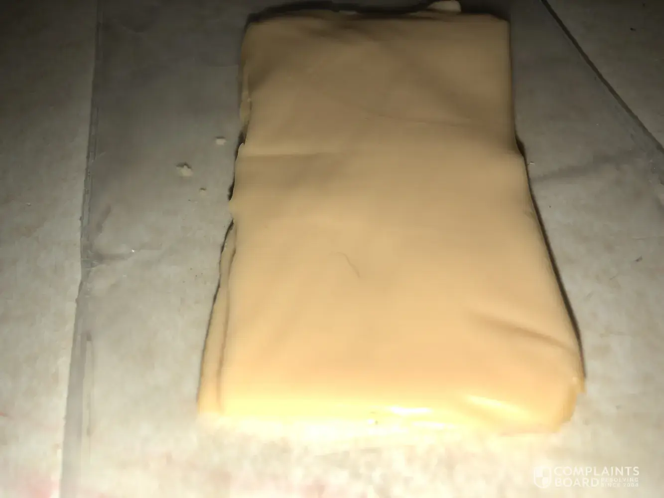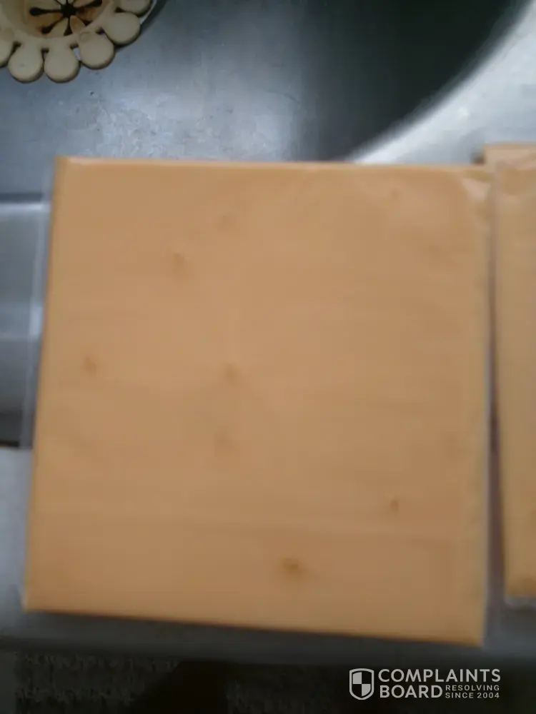 I always buy your large box of three pack cheese slices. On the ends of the cheese slices they are hard and dark like there dried out on the ends. I like your cheese singles and I'm 62 years old and never had a complaint about any of your products till now. Could you please replace this box because I'm on social security and every dollar is valuable to me. Thank You