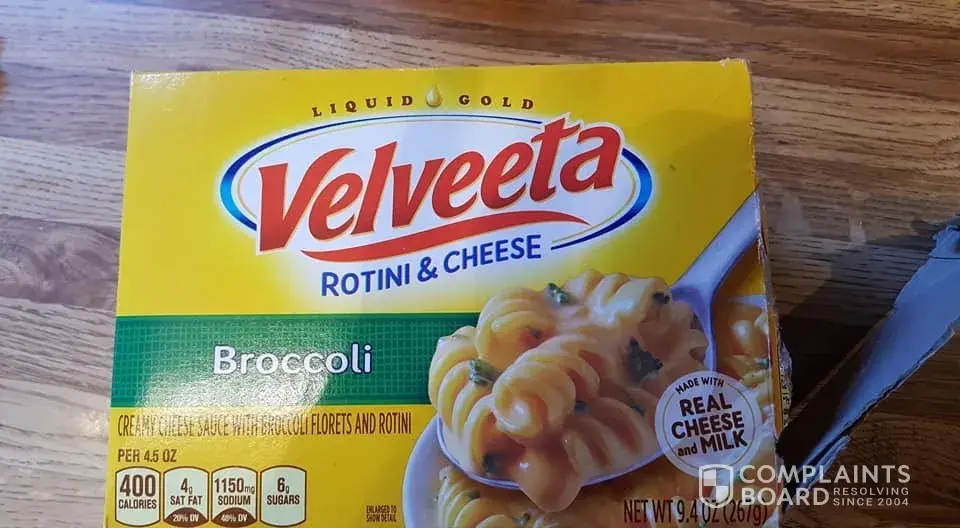 Purchased box of Velvetta Rotini and Cheese with Broccoli. We eat the shells and cheese all the time and decided to try the Broccoli. It tasted great but within 5 minutes my daughter and myself broke out in red rash on our face and on her hands. My throat started burning. The velvetta was the only thing we were eating. I cleaned our faces but redness and rash did not go away. We both took Benadryl to prevent any further reaction. I can only figure it must have been something in the Broccoli packet.