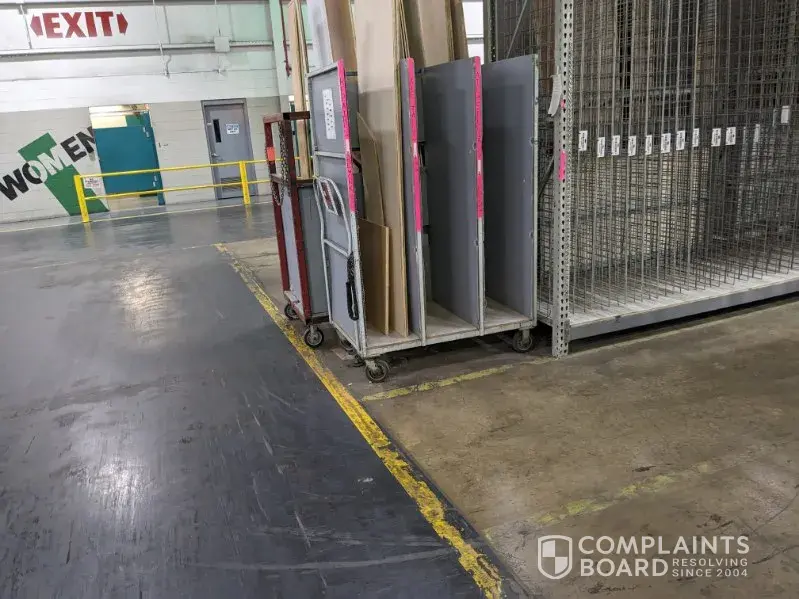 You can see in these pictures attached that not only my safety at risk, but the safety of others in the plant as well. The walk-ways are blocked with carts. My view is obstructed, can't see see if anything is coming before stepping out from behind carts. The pictures also show that the crown I drive is sticking out in the roadway while I unload material from sleds, because there is no room, I also have to exit into on coming tow-motor and crown traffic. I really think these things need to be taken care of before myself or someone else gets injured. I have been asking leads, management and higher-ups to address said problems and I keep getting the same response, "we are working on it", well it's been at least 14 months this has been going on and still nothing is being done.