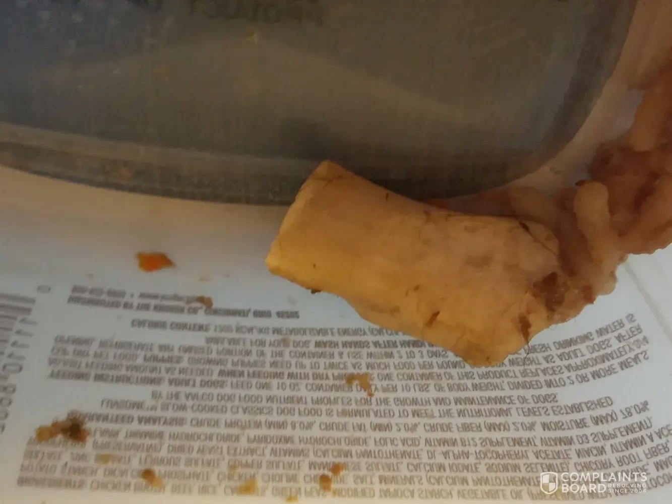 Yesterday I purchased several varieties of this complete soft food for my 17 yr old dog who began having issues with dry food. I opened the Beef Stew variety and gave it to her. She appeared to enjoy it eating it down quickly. In the middle of the night she began whimpering and began to shake them three up on my bed. I quickly moved her to the floor where she continued to throw up and cry in discomfort. When I went to clean up her mess I discovered a rather large bone that had clear cut Mark's on it.