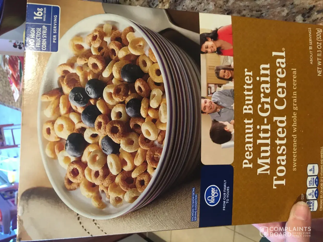 I purchased a box of cereal last week and was about 1/2 way through it when today I was pouring into my bowl and a big glob of cereal and peanut butter flies out. I wasn't to thrilled about a wet good being in my cereal. It smells funky and looks like the peanut butter is bad, if that's even possible. This is the first time I've tried Kroger brand cereal and it was good until this point. I'm grossed out a bit.