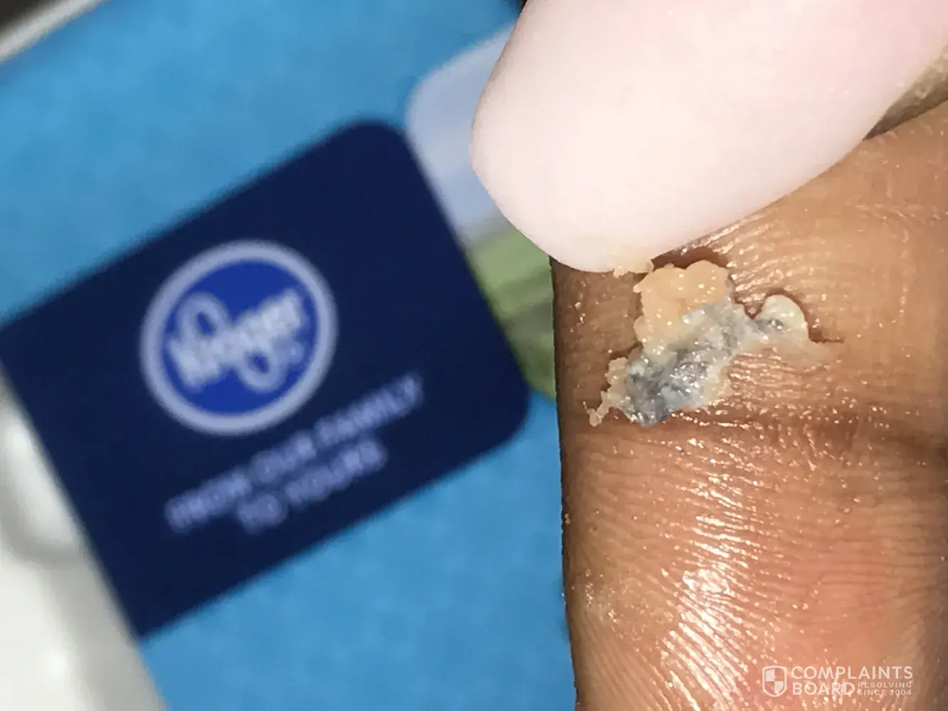 This broke the straw, I made the last of the thick cut pepper bacon this am and sat to eat with a cheese omelette. After halfway thru I noticed a pubic hair clinging to the bacon. It is dark in color and now has cooked bacon added to it. It is not mine, I live alone and what hair I do have is totally grey and not kinky. I have a picture of it.in my disgust, I began to eat the peaches I purchased and every dam one was dry and gritty. Way too old. They are very expensive this time of year. I have had a few problems with kroger but normally just toss it out. This is too bad to ignore. What makes it worse is the counter guy wears a very dirty, filthy half fitted ballcap every day never washing it or changing it. I sick
