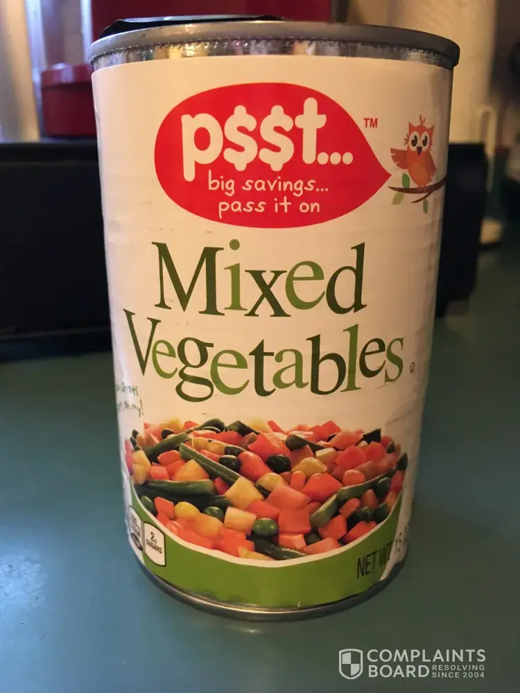 I typically only buy Kroger products and I am always pleased with them. I don't always buy them, but as money is tight the Psst products help to stretch the dollar. The mixed vegetables were bought twice both with horrible results. I thought the first time was just an accident. But the second time the results were the same. Please view the picture on the can and what is actually in it. Highly disappointed. The majority was only carrots and potatoes. I am all about value but I also expect the product to be what is described. If I wanted just carrots and potatoes I could have bought that. If adding the rest of the vegetables is not cost efficient for the Psst products I suggest removing it from the shelf.