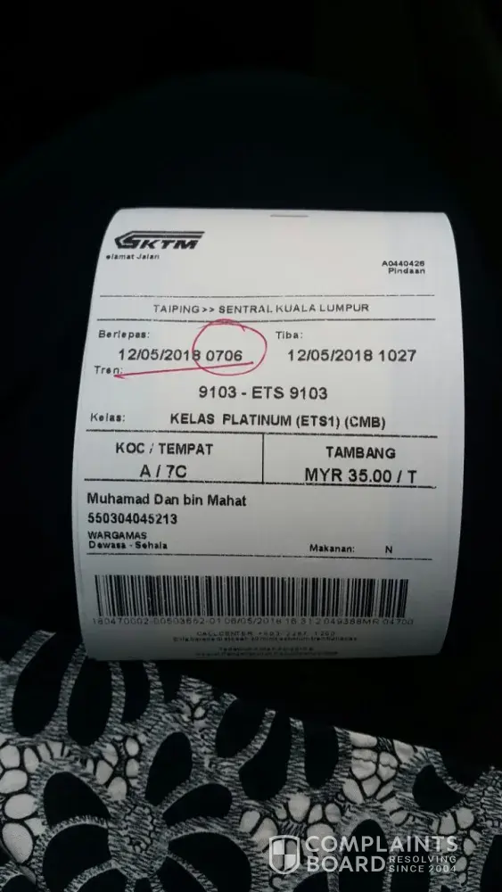 Jika benar mempunyai entitlement utk hidangan tersebut, sy di sini ingin memajukan aduan ni di mana ibu bapa sy tidak diberi hak mereka dalam perjalanan pagi tadi (tiket perjalanan seperti di attachment). Seterusnya memohon pihak ETS membuat tindakan selanjutnya agar kejadian seumpama ini tidak berlaku lagi.