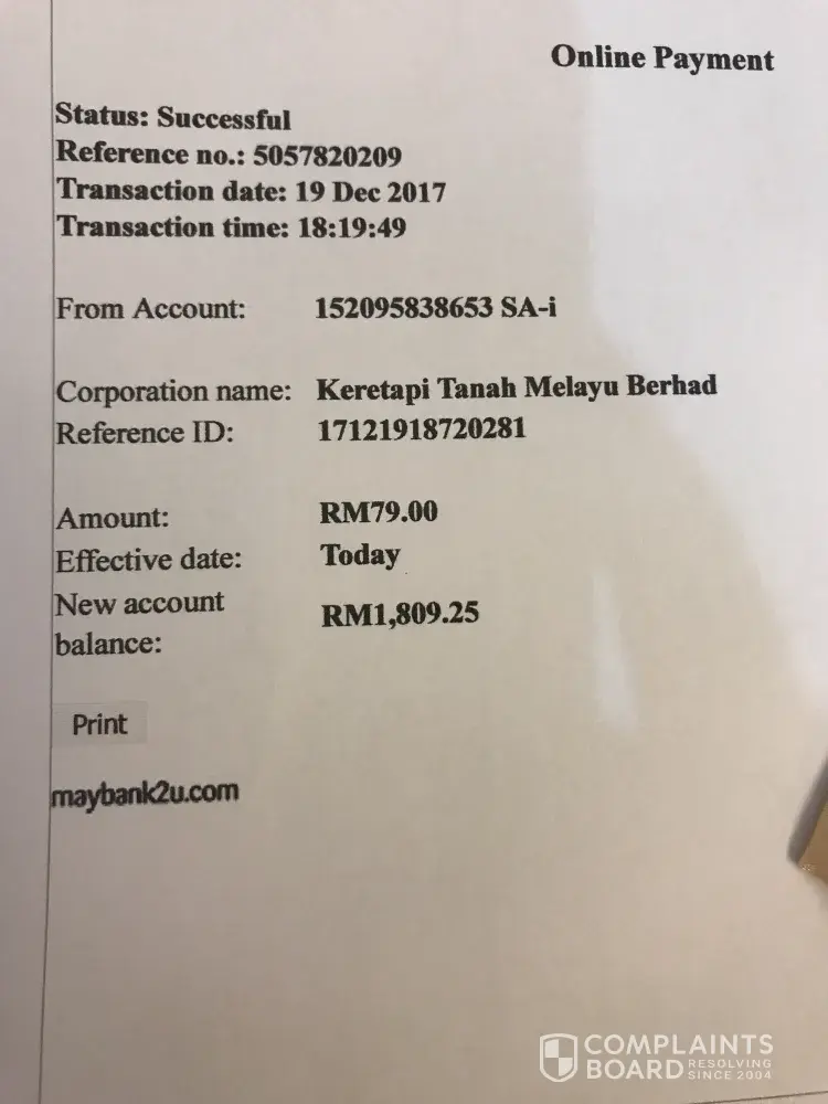 Good Morning, I would like to hereby complain about an incident happen last night regarding KTM services .Last few days my friend Mr.Lye bought a ticket using online payment, the system stated there paid and there was a proof of transaction history as proven below, but yesterday when Mr.Lye went there during the morning he was told that there was a system problem and they would refund him back the money and he was ask to bought another ticket but for a later time because he had an urgent matter to go back home yesterday, but because of the system error his trip was delay from 6pm noon to 10pm, it is alright the staff did apologize and said they will refund him, so he bought the next ticket he could get to go back home as soon as possible, I was not aware when I was using my ktm student card at the time with my friend the staff accidentally bought the passenger name under the card owner name and not my friend name (Mr.Lye), the staff did not even ask anything regarding the passenger information and so we taught that we have already bought a ticket for him.Despite after the staff check the earlier ticket bought under my friend's name(Mr.Lye) the staff did mention his name also before the staff said of having a refund, but still the staff open the ticket name under the card owner which is me instead of the passenger.What is worst when he went inside the train on his way home, your train staff who is assign to check for ticket identification ask Mr.Lye for ticket identification proof and my friend IC,