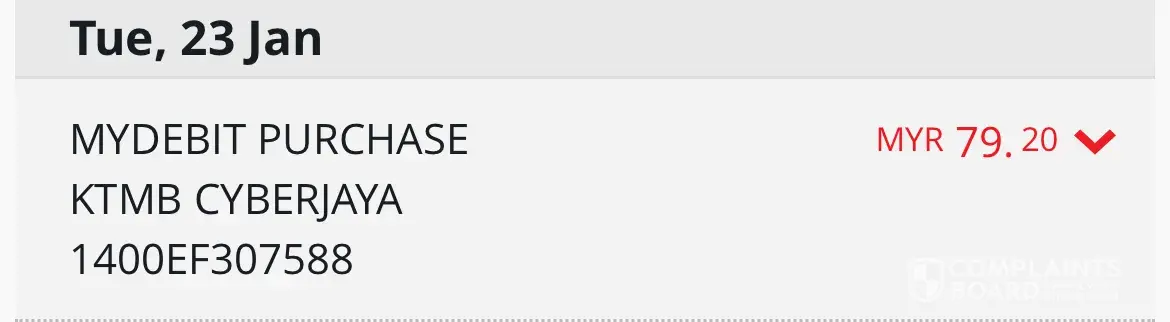 I was charge RM79.20 from my CIMB Bank on 23rd January 2024 when i was using KTM from KL Sentral towards Port Klang Station arriving at 0019Hrs.