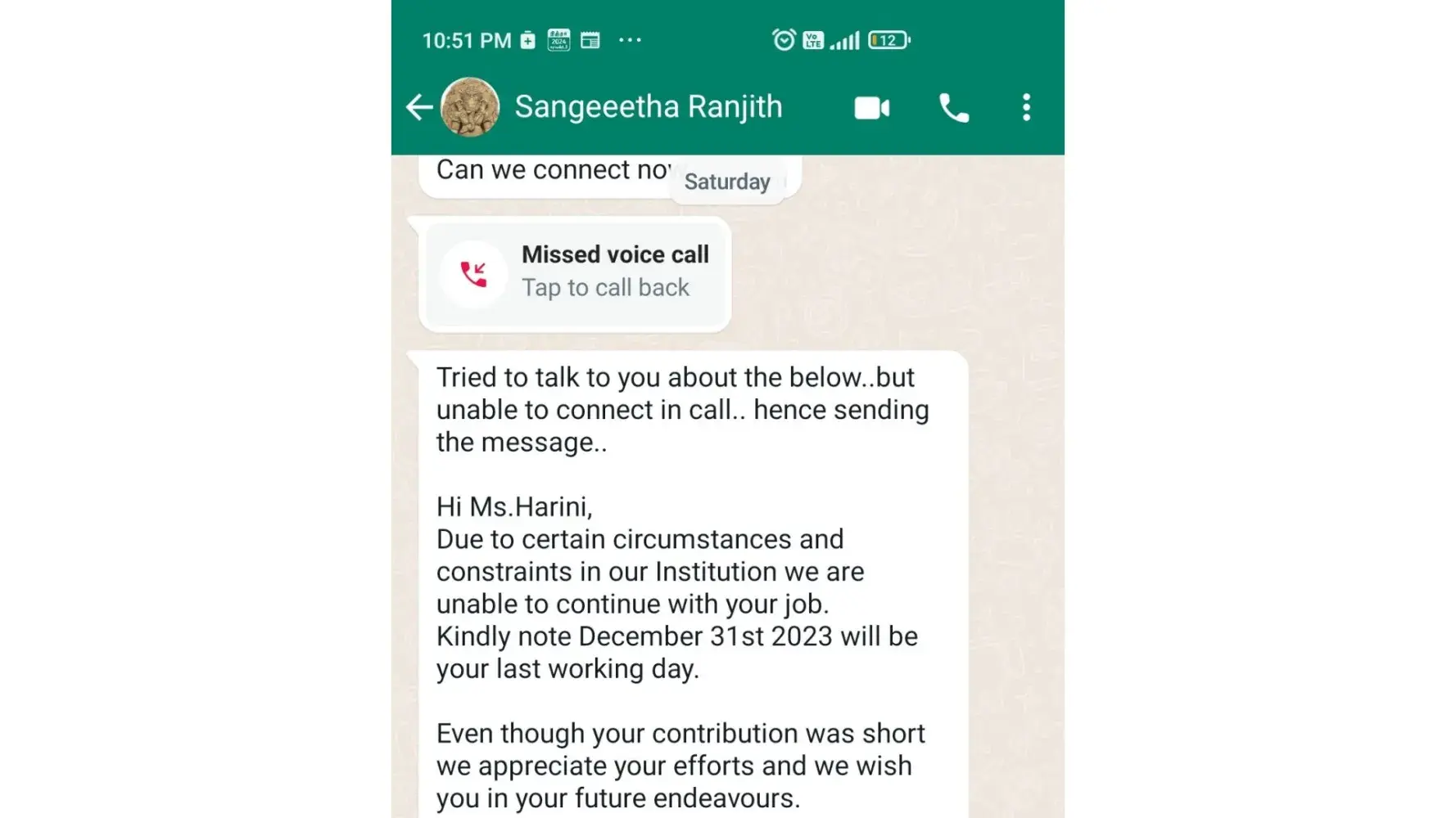 2. She does threatens my family and uses the word " she has contacts and connection, so please be considerate about my family and career".