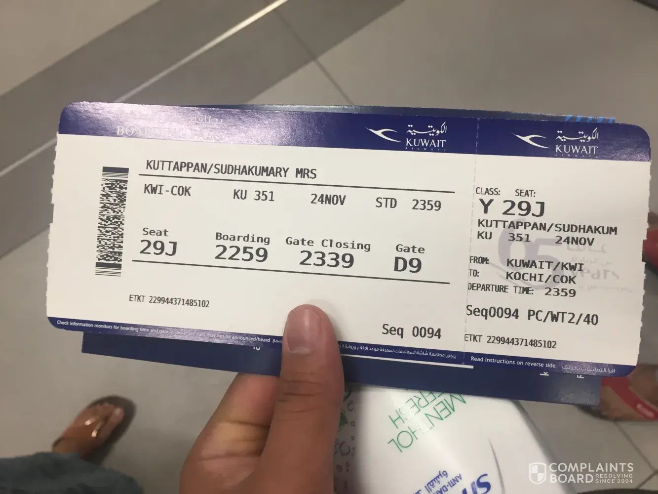 FLIGHT NUMBER : KU332 TVM TO KUWAIT