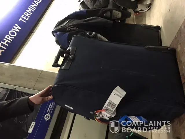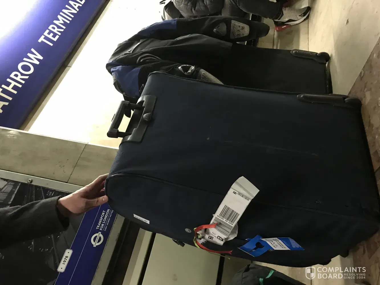 Hi, I flew from BLR to LHR (terminal 4) yesterday (11/01/2020). On receiving my baggage, I noticed the left wheel missing from my hold luggage. I was very disappointed as I was unable to wheel my suitcase at all. It had to be carried while we walked which was very inconvenient. Obviously, it cannot be used again as it is that damaged. You will be able to notice the damage clearly in the pictures. Attached are pictures of the damaged suitcase along with my ticket. Please do let me know of the procedure one needs to follow in this case? Thank you.