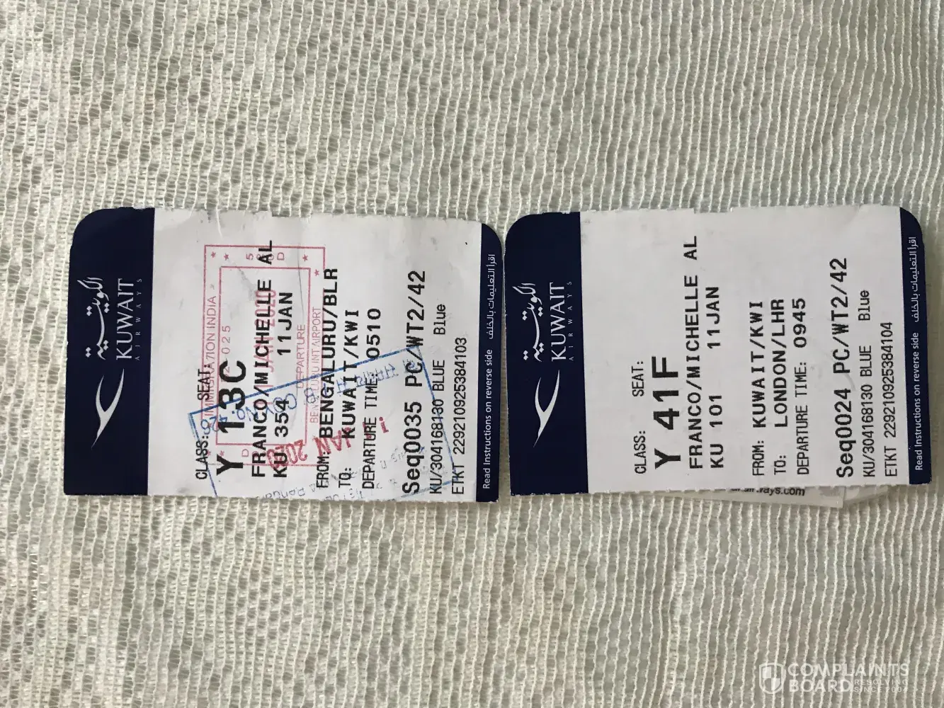 I'm writing this email on behalf of my brother who travelled from London Heathrow, United Kingdom to Kuwait on 13 December in your flight KU 0102, seat number 28C. then from Kuwait to Mumbai on flight number KU 00303 on 14 Dec. seat number 21 C.