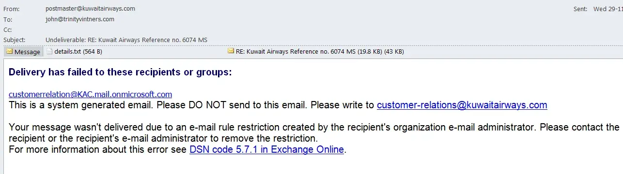 This is Kuwait Airlines second administrative mess up for this trip. I had previously booked to fly on the 9 December 2017. However Kuwait Airlines changed their schedule without explanation and made me rebook for the 10 December 2017, costing me an additional £125 to change my connecting flight from Dhaka to Sylhet with Biman Airlines.