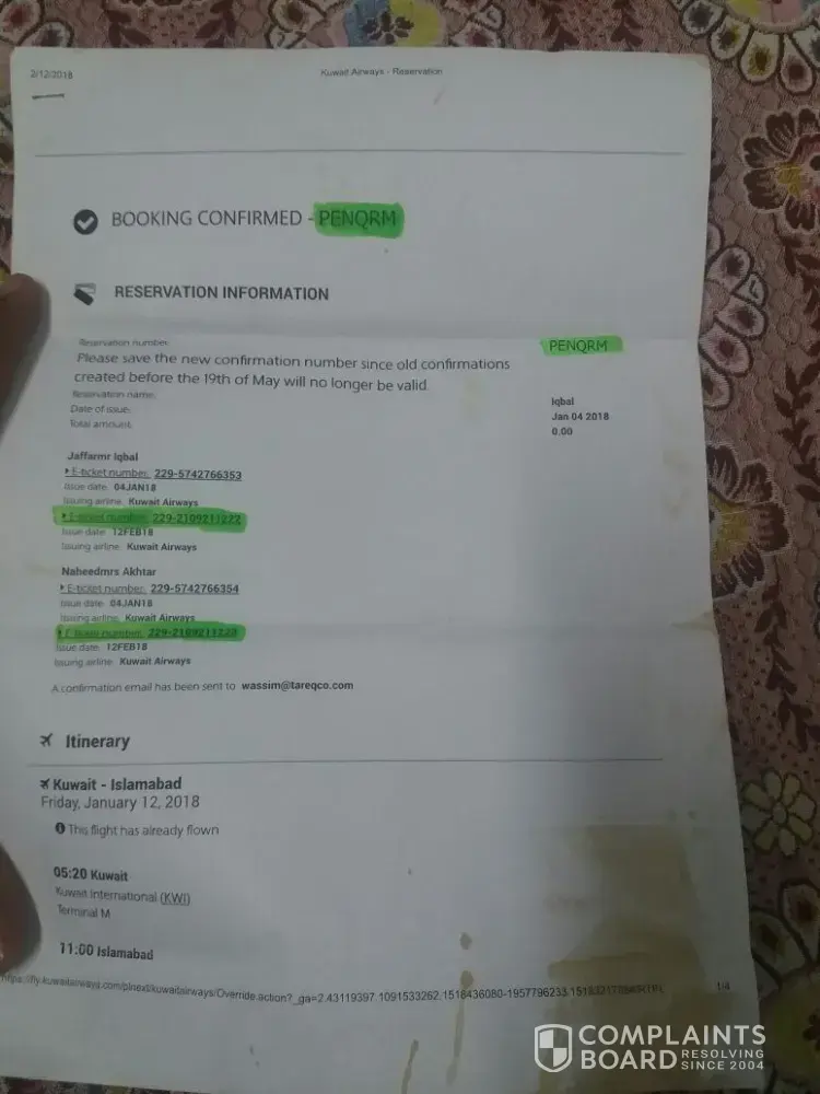 I would like to lodge a formal complaint against Kuwait Airlines and request for urgent remedial action and redress.