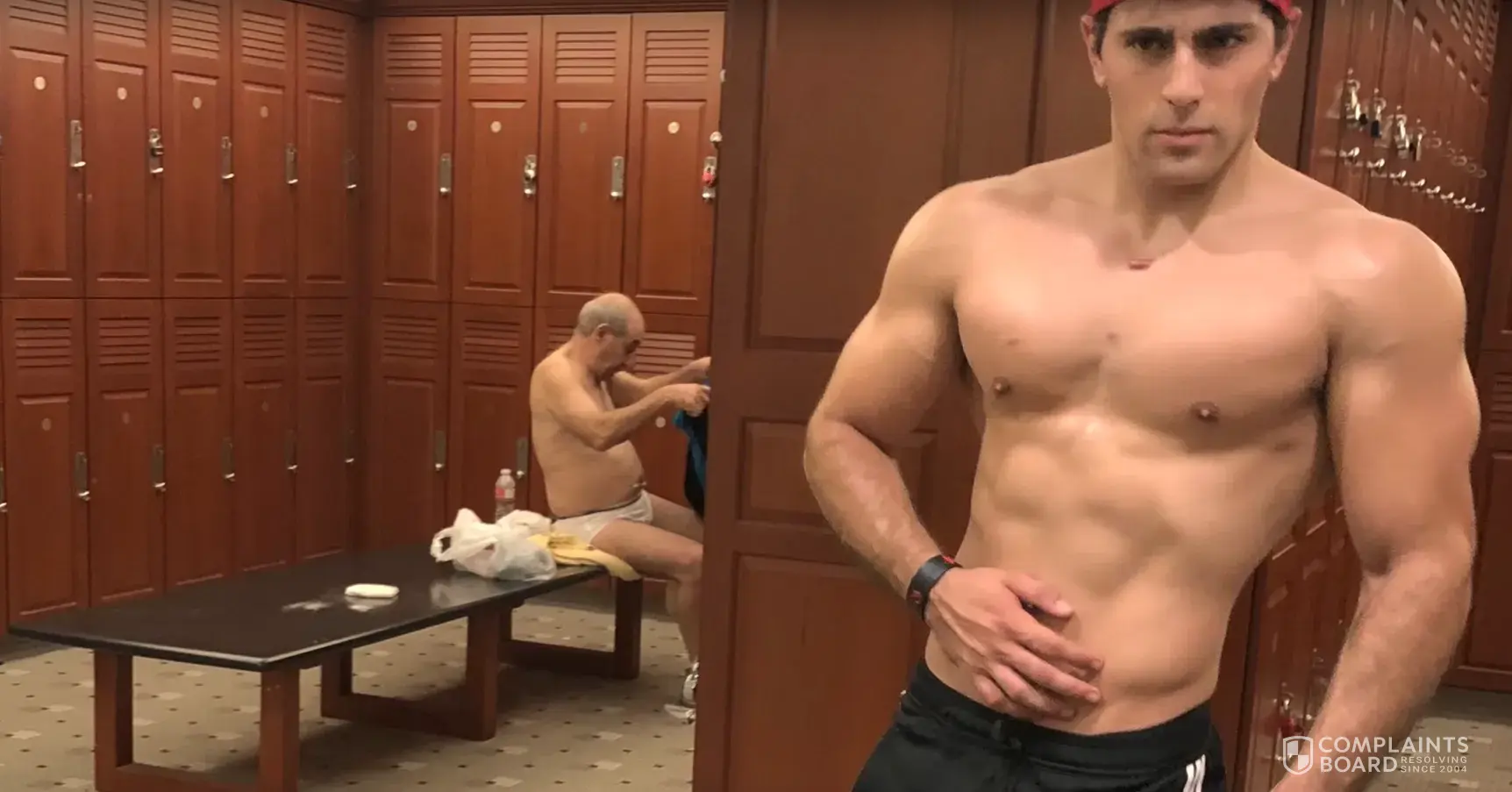 Theo Mouawad takes pictures of himself and gets old guys in the background in their underwear half naked who are just minding their business trying to get dressed after a work out. Thats 100% invasion of privacy right there and is against the law.