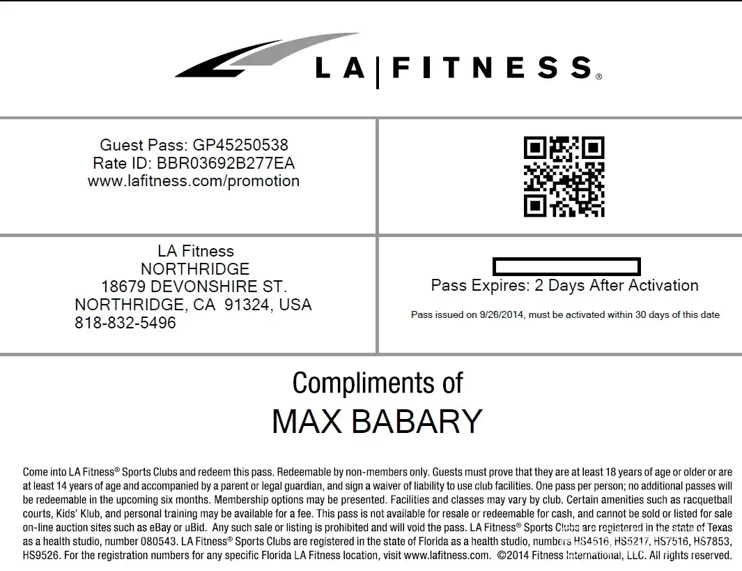 We currently have membership in one gym on San Fernando and we want to check a better option, I printed 3 guest passes for LA Fitness NORTHRIDGE, CA to try the different classes and train the 3 days and if we like it then we can move to that club... My Wife, my nephew and I went to the club on Sept 30th around 8pm and the sales rep gave us a tour and showed...