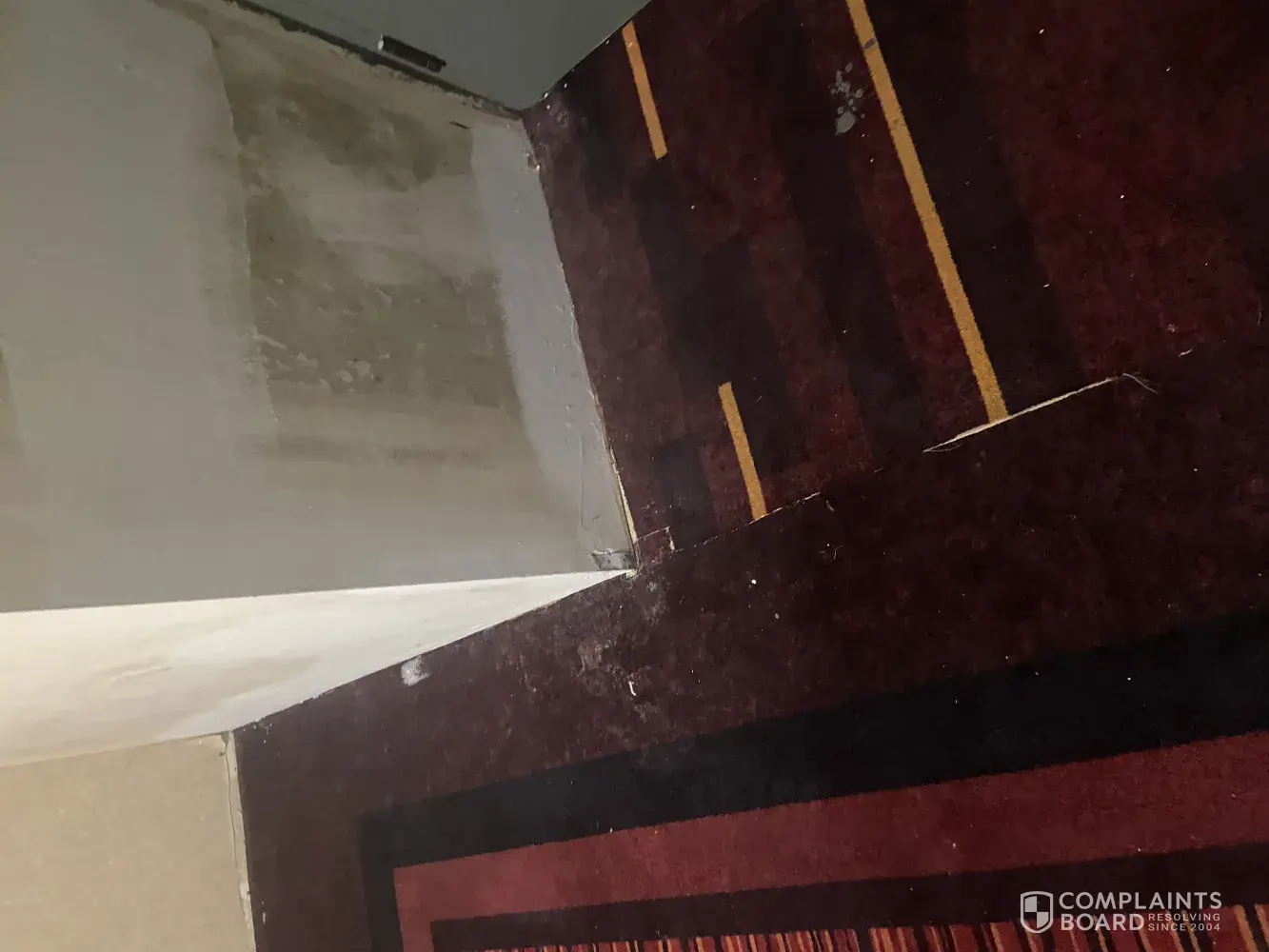 Hotel was horrible and disgusting. Rooms not done hallway fire doors locked, dogs barking no to very poor outside lighting . Huge holes in ceiling leaking what appear to be sewage water based on smell. No doors locked so anyone could access hotel without a key. Rooms smell of mold and smoke phone did not work . Floor soaked due to leaking fridge. Ect