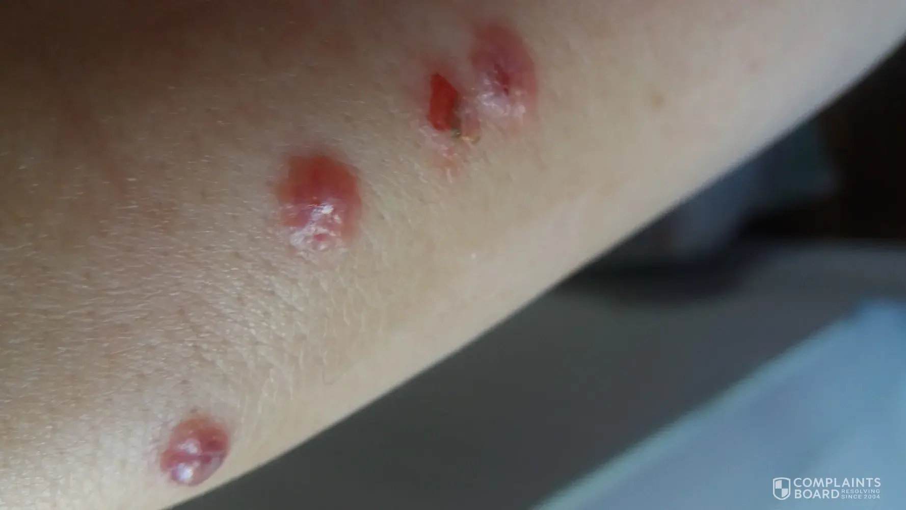 My name is Alejandra Risso, I'm currently staying in Quality Inn, 1505 Belvedere Rd, west palm beach. We arrived Thursday morning with my parents and my 2 daughters in law. I rented 2 rooms one for the girls and one for my parents and I. It is our first time in Florida, we just moved here after a long journey from NY. We needed to stay in a hotel until the moving company gets here. My dad is also going to start dyalisis a couple of days. To my surprise even though the rooms looked good, during my first night I felt bites as I was sleeping. When I woke up my right arm, left hand, right and left leg had multiple bites. I went downstairs and spoke to Karen who I believe is your manager. She had no life when speaking to me, no compasion or sympathy. She looked at me like I had three heads. I asked to switch our rooms which she did, but she did not offer to help me with medicine or show any concern that this happened to me. This is a serious matter. Tomorrow we will be checking out, and I want some kind of compensation. I have felt terrible these past few days, feverish, swollen and worrying about getring an infection. I could not go to the emergency room because I do not have insurance here yet. Attached below are pictures.