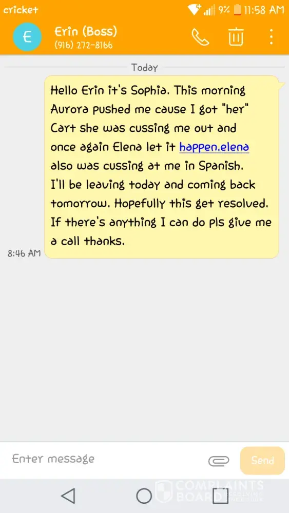 On Tuesday the 25th of September I was pushed by a coworker Aurora. I have been bullied the entire 3 months I have been at la Quinta in Reno NV. GM Erin acknowledges this but I have seen no action. I have been in her office more than once the bullying and twice in tears. Still I went to work and still was bullied by Aurora and Elena who has been there for 10 years. I understand Spanish which they thought I didn't during mine and Aurora confratations Elena cussing me out. I have told this Erin as well. Other coworkers have complained and Erin has told us to "stand our ground".The day Aurora pushed I texted Erin to let her know the problem. There was no call or text back from her as I thought if one of my employees got pushed IMMEDIATELY would I want to address the situation. She did not as to that is why I choose not to go back.The 24th Erin had allowed Elena to have her son at work. This is just another example of what Erin allows these woman to get away with. There have been days I did not show up for work because of the bullying. I truly loved working there and got along with EVERYBODY never have I had to deal with such at a workplace and I wish nobody else would have to go through that. This is why I am writing this. I don't wish to go back but that something is done for future employees. I thank you and appreciate for taking the time to read this.