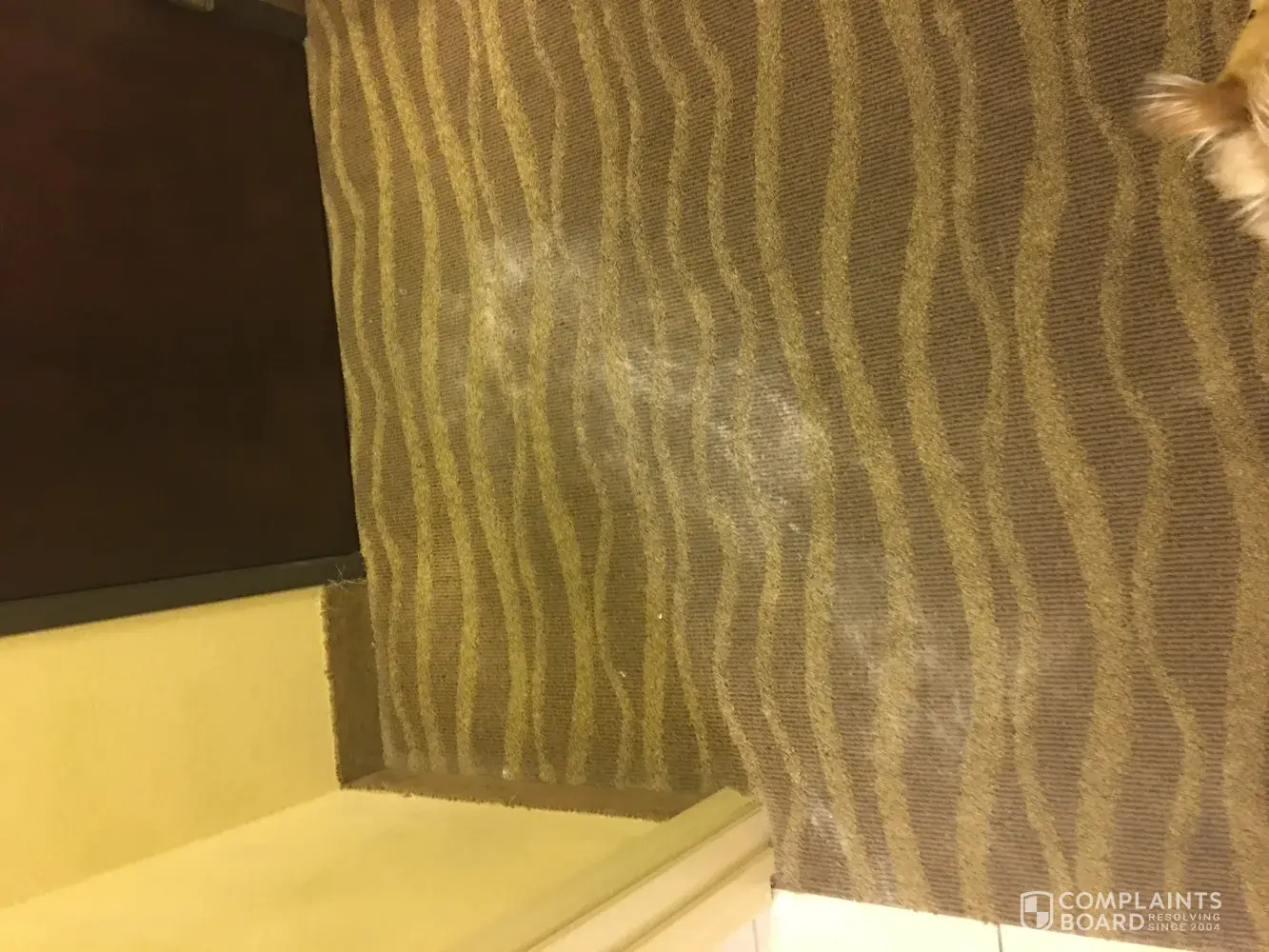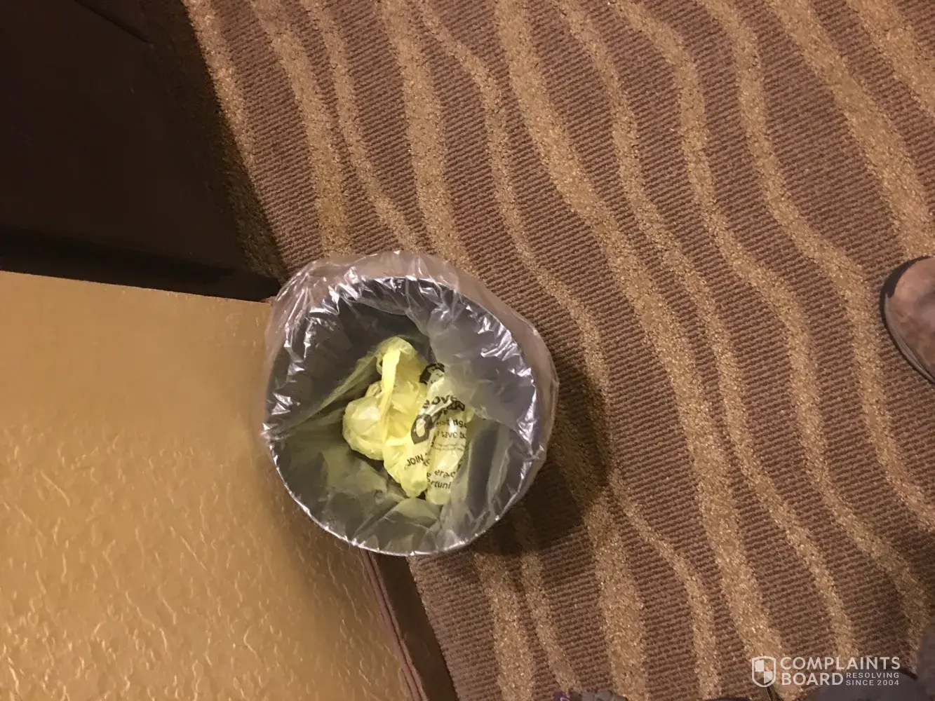 I walked into my room and there was a discharged deodorizer can on the floor. I immediately walked out not wanting to inhale chemicals. The maintenance tech removed the can and I returned a few hours later. Honestly, I assumed it was due to someone possible smoking in the room. When I got back from dinner, I could smell vomit.