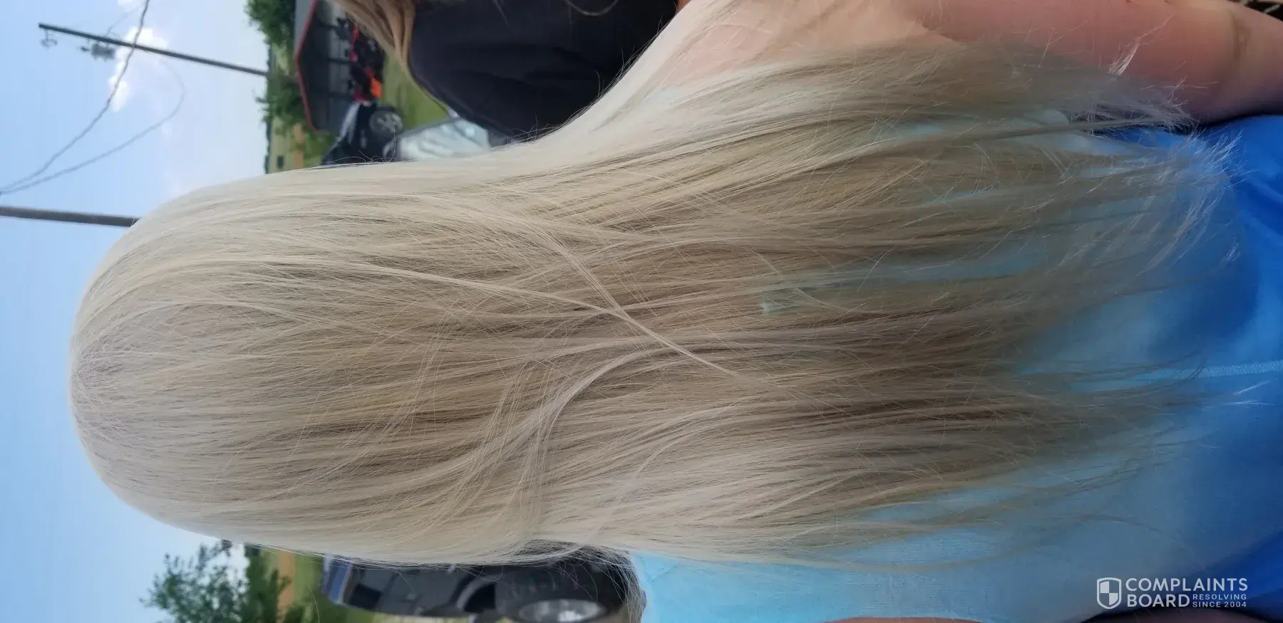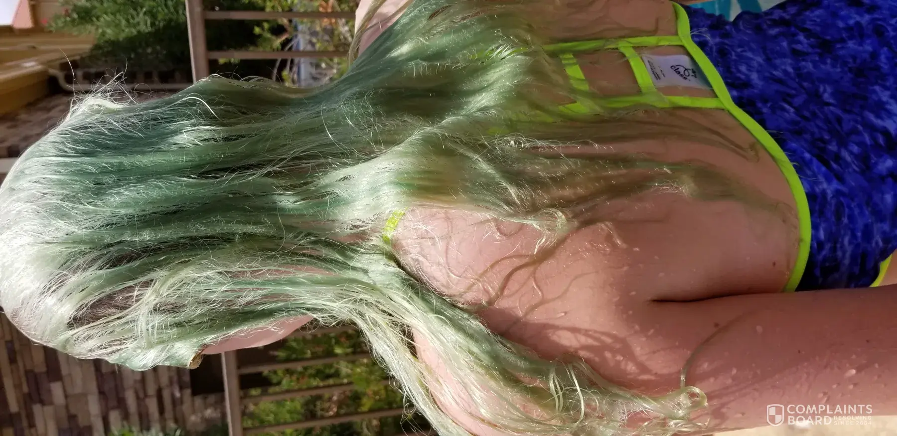 As soon as we got here I took my kids swimming my daughter is a blonde and we swam in the pool for a bit before we moved to the hot tub and not long after her hair turned bluish green I ask the front desk about the chemicals in the pool and they checked them . I noticed the next day the hot tub had been painted blue and ask if it could have done it they were no assistance what so ever it will cost me over 100dollars to have her hair fixed before school in a week I'm highly disappointed and very glad I didnt g we t my hair wet . I posted a before and after picture and she is naturally blonde.