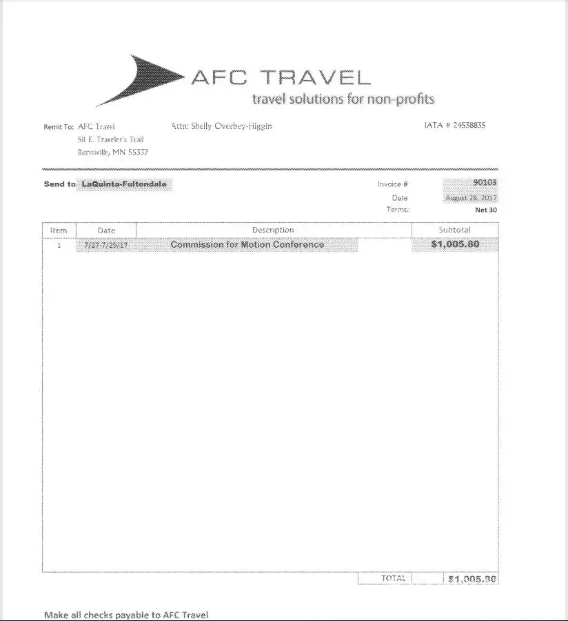 We have 2 contract for motion conference july [protected] in birmingham, al. Laquinta fultondale & laquinta homewood. Both locations have not paid for commission. Total $1433.00. To date I have not rec'd payment. I have made several attempt to resolve these issues with both locations, and they are not returning my calls and or giving me an update of the check.