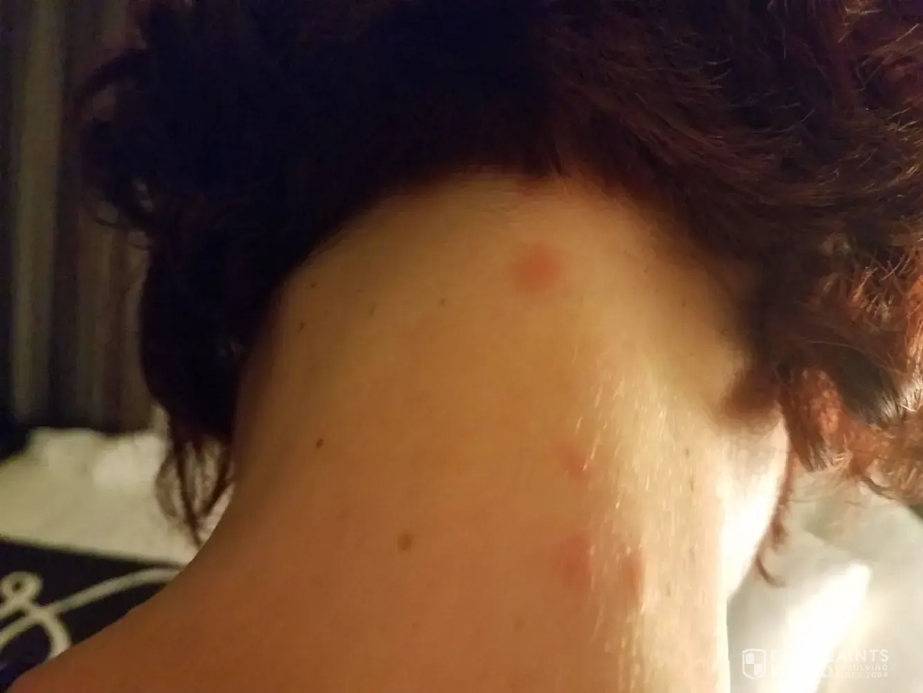 I reported it to the front desk who didn't seem to believe me so they came to my room to investigate. In my room, I showed the hotel clerk a few of my bites that I had on my body, while she called her manager, I started to pack my belongings when I actually found a live bed bug in side an item of clothing. We caught it and she put it in alcohol.