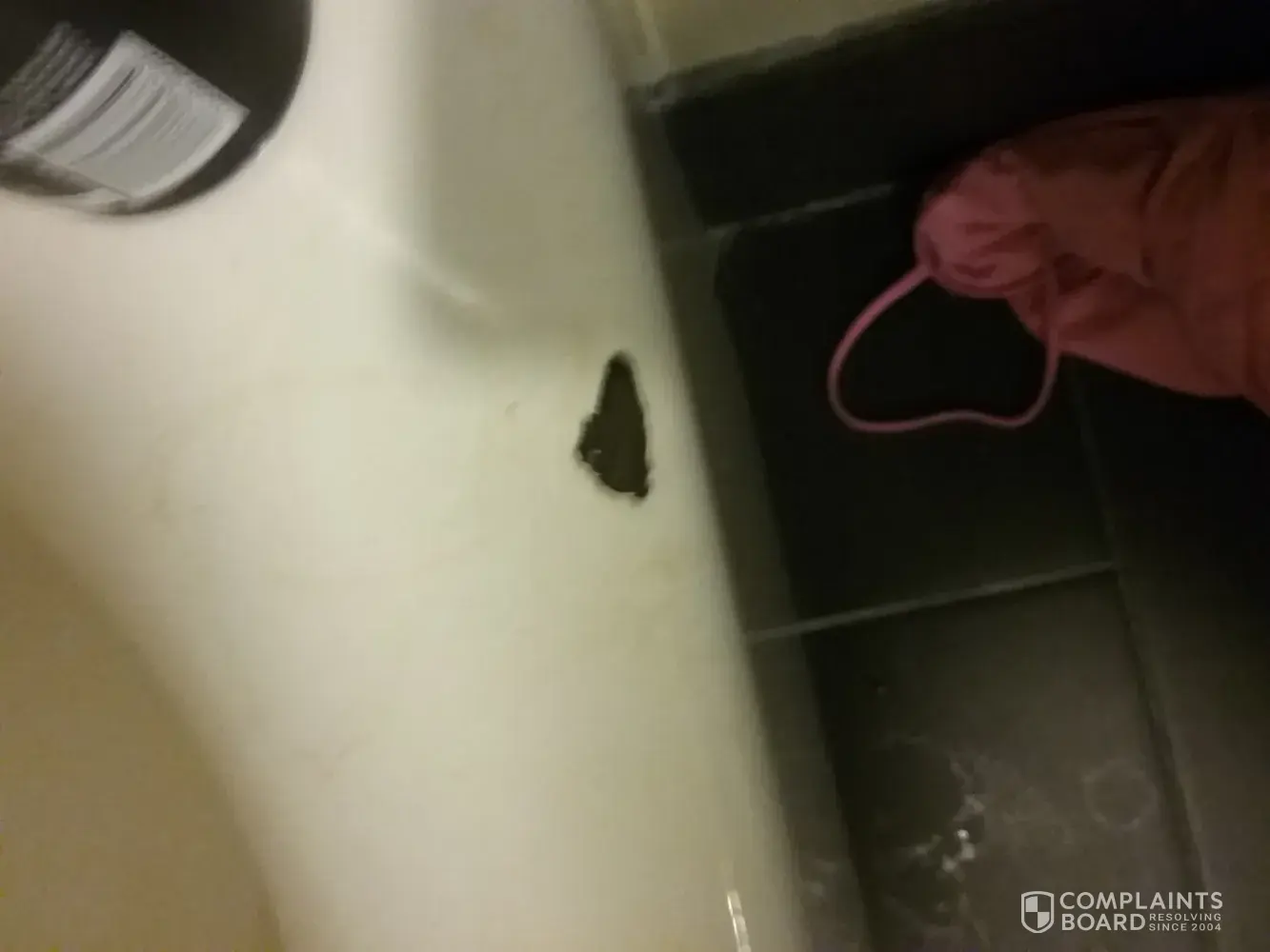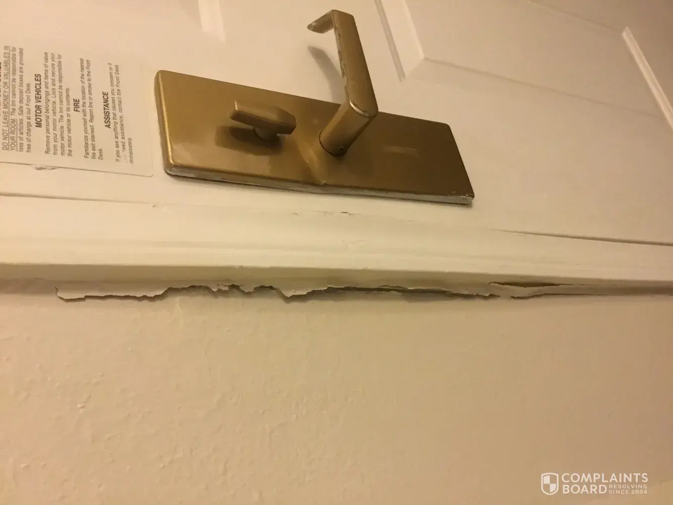Blanket from pullout sofa filthy under pull out sofa dirty Used q tips and tissue huge crack in ceiling floor base coming off by bathroom tub stained and dirty fan in celing bathroom looks like never been cleaned, got pictures of everything not usually what we get when we come here I spending three nights in a double queen suite every time i come to Richmond I stay here and after this time don't know went down stairs told lady working all she said was she would give me 3o dollars off