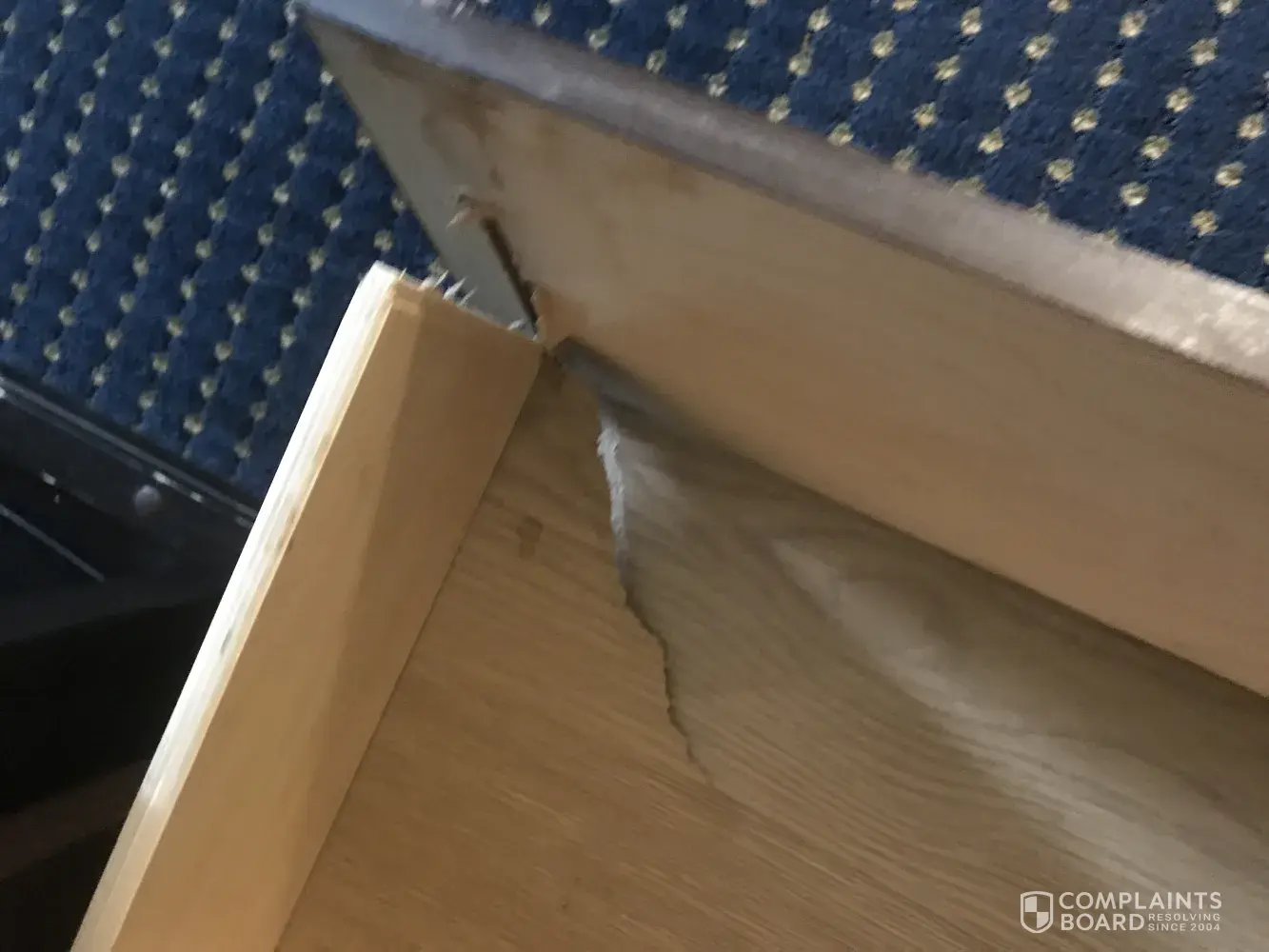 While staying in a La Quinta Inn in mid May (May 11, 2018), I realized a drawer was broken in the room and kept drifting out of its bureau.