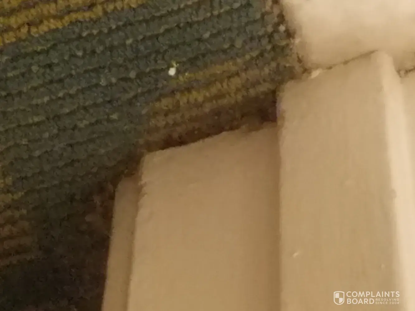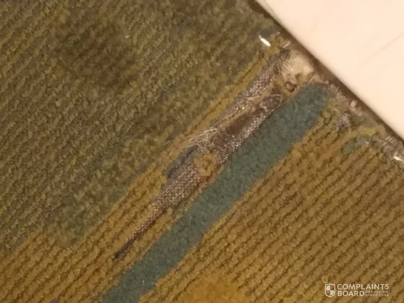 -torn, stained carpeting