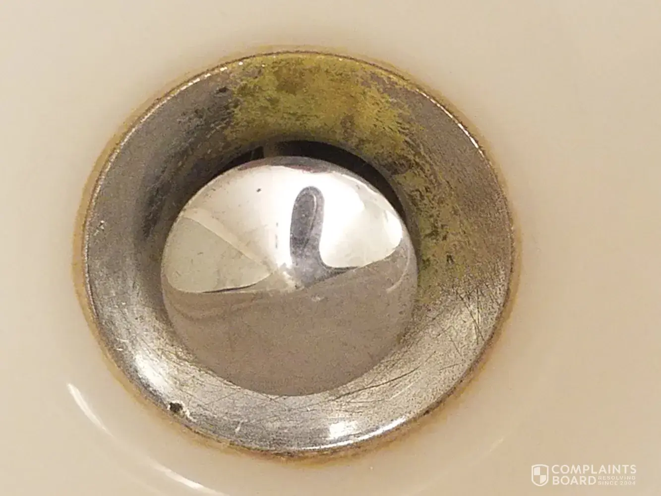-green slime stained sink drain in bathroom