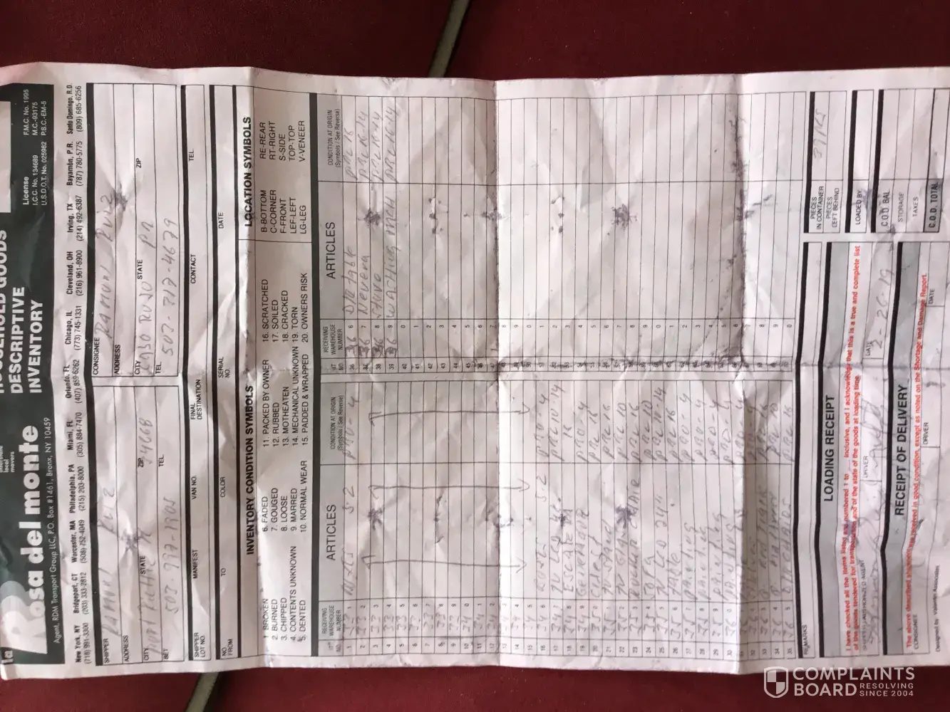 this review is complete nonsense. I have used this company more then 3 times and I have never encountered any problems with customer service or the condition or my furniture and other items when I received it. I completely disagree with this complaint and I feel as if this an attempt to defame the character of this company. La Rosa Del Monte is the most responsible, pleasant and highly decorated moving company my family, friends and I have ever used.