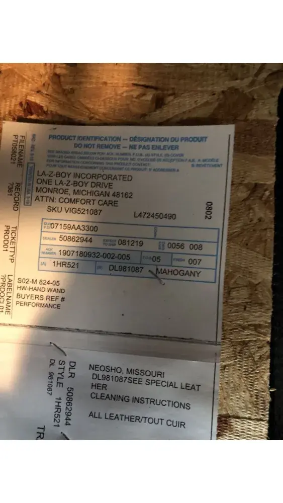 I called Maria at the store I bought the chair out and told her the problems I was experiencing. She had me send pictures of the manufacturing tag underneath the chair that I had taken earlier. She told me she would contact La-Z-Boy and get back to me.