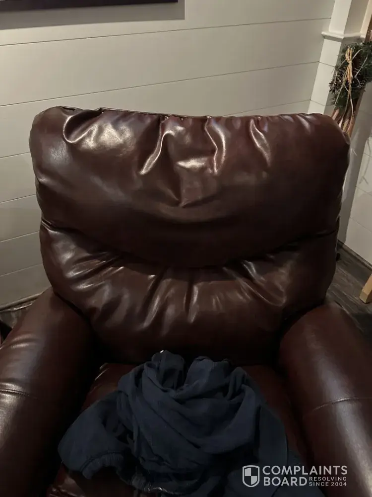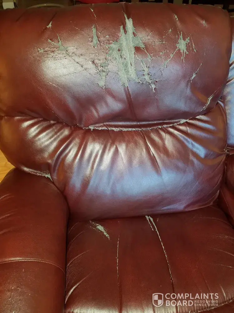 We have experienced the same thing. We bought form Lazy Boy, because they were known for recliners and quality. We were told in the store we were buying a leather recliner. We paid $1150. Two years later the leather is flaking off! Our local store is closed. I called the next store within our area, and were told it is out of warranty. We were scammed and lied to. DO NOT BUY LAZY BOY PRODUCTS! The sales people are CLUELESS! Very angry and will spread the word.
