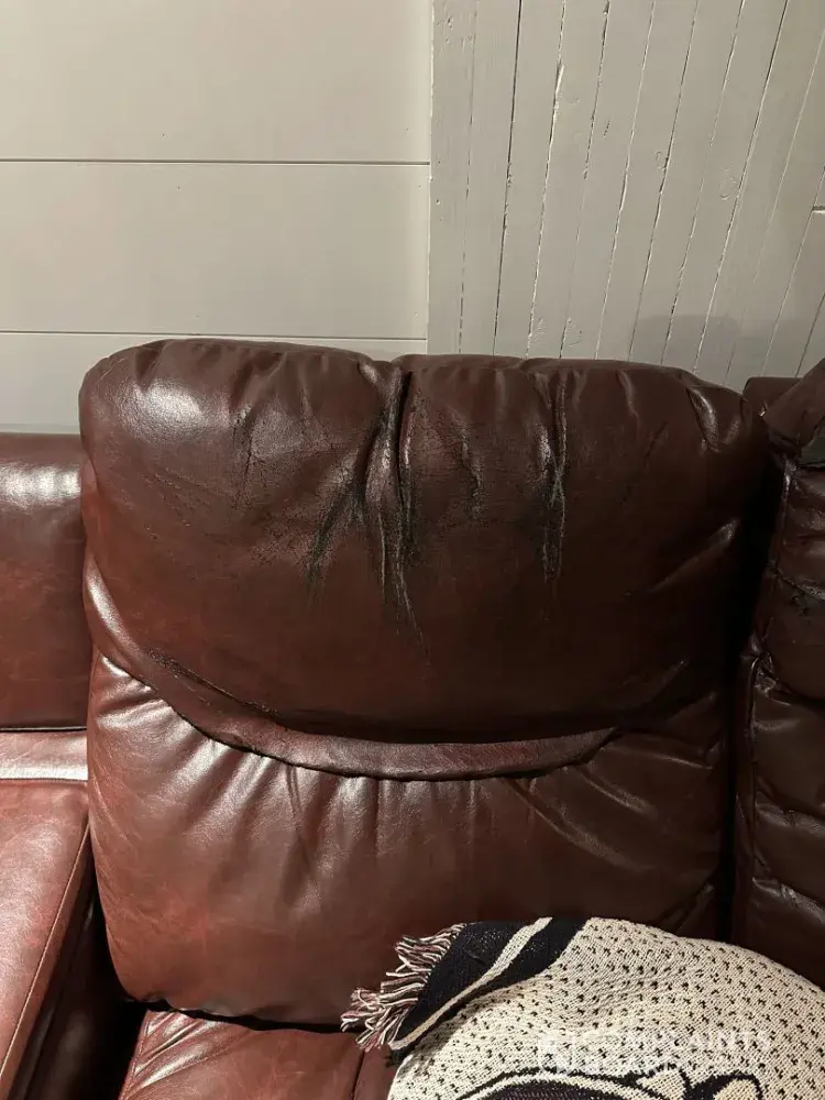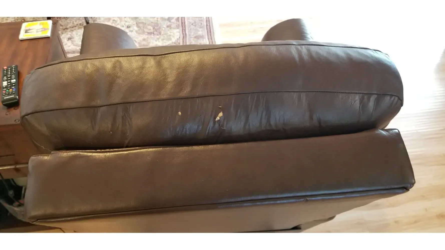 I purchased a custom Dark brown couch during the pandemic took 8 months to receive and the 2 years later a bubble appeared? it finally popped and come to find out they painted dark color over an existing lighter brown couch, now they say it is out of warranty and will not fix it even though I say you never delivered what I ordered leather couches are dyed not painted there is no way it should peel, fade maybe! and under is the lighter color that is perfect, they scammed me and should replace the entire couch.