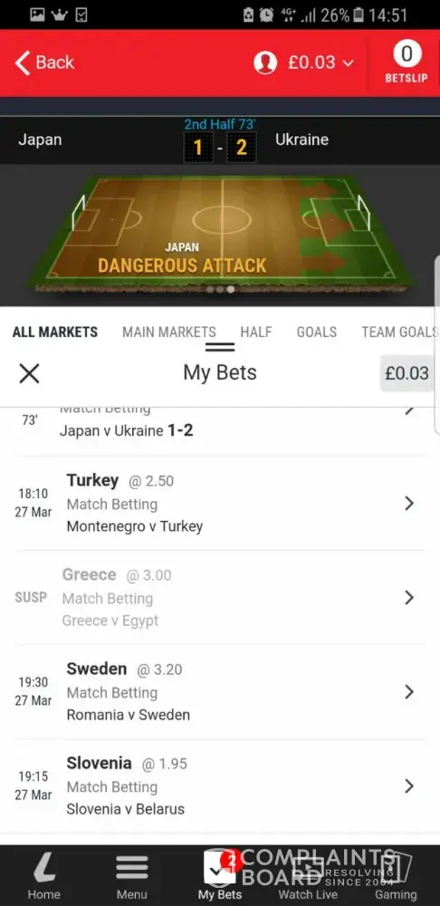On the 26 th of march 2018 i have bet 40£ on 6 games, one of them playing that day and the next 5 on the 27 th of march 2018. The first game was a win and i had the cash out option for 71£ but i didnt cashed out. The next day on the 27th of march 2018 as the first game started my cash out war suspended by another match so i ve been to the nearest ladbrokes agency and explained to them whats happening. They called the customer service and let me talk to a guy, that guy told me that i made an accumulator bet and this is how it works but its not true it was not the first time beting i tryed to talk with him but pointless...in the end i was not able to cash out. Is there anything i can do to recover at last the money i lost if not even something more because at one point i would have a pretty amount of money to cash out. I have to mention that i was using the mobile app to get. Kind regards and i am waiting for an answer or advice of how to proceed next