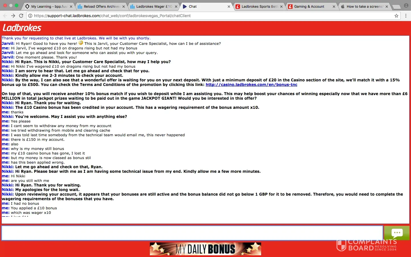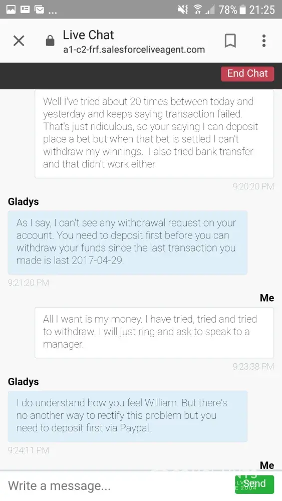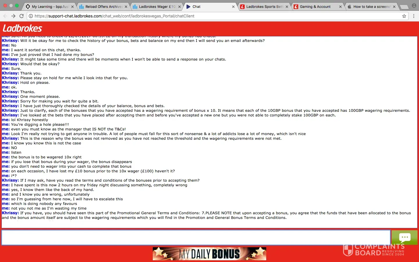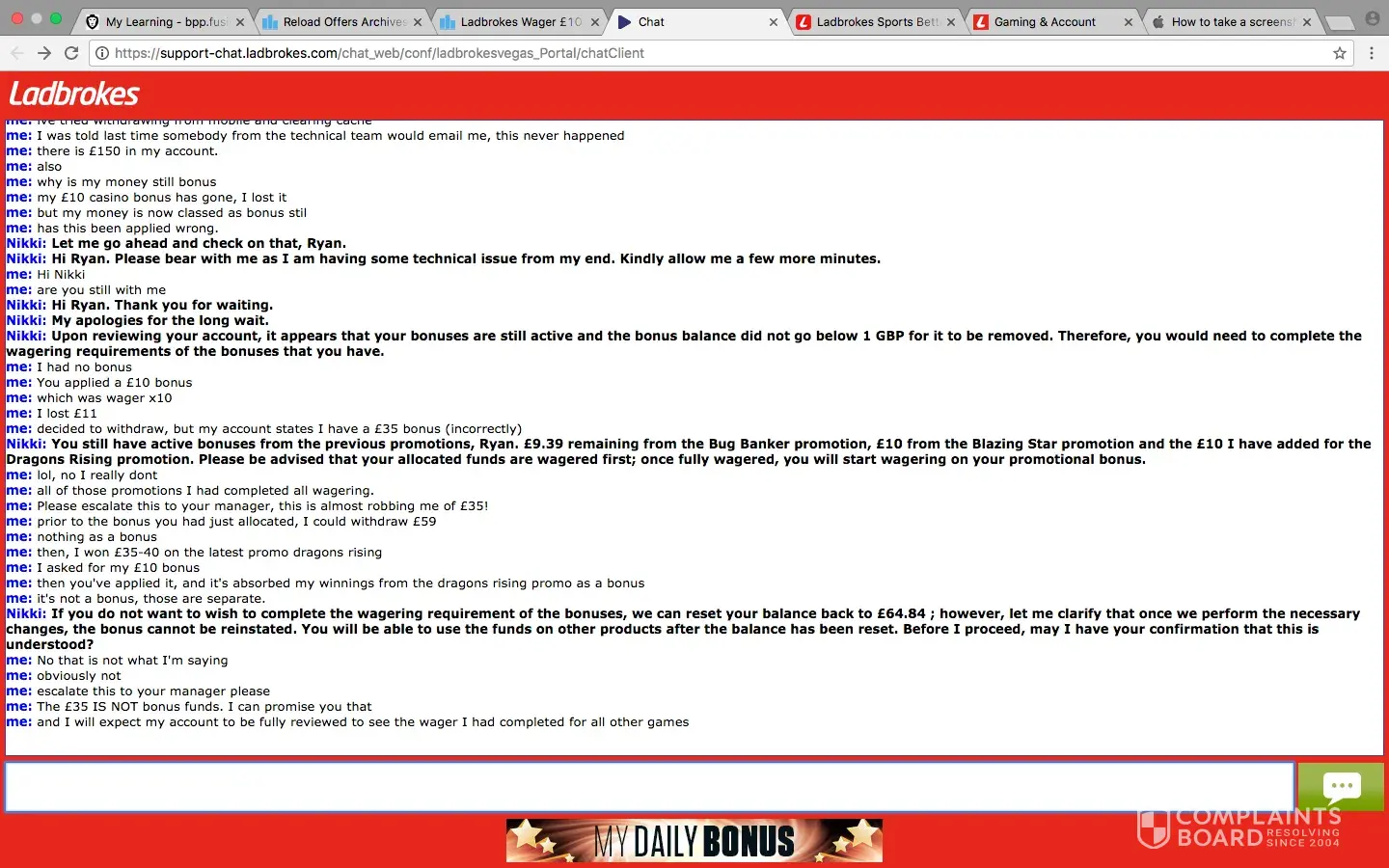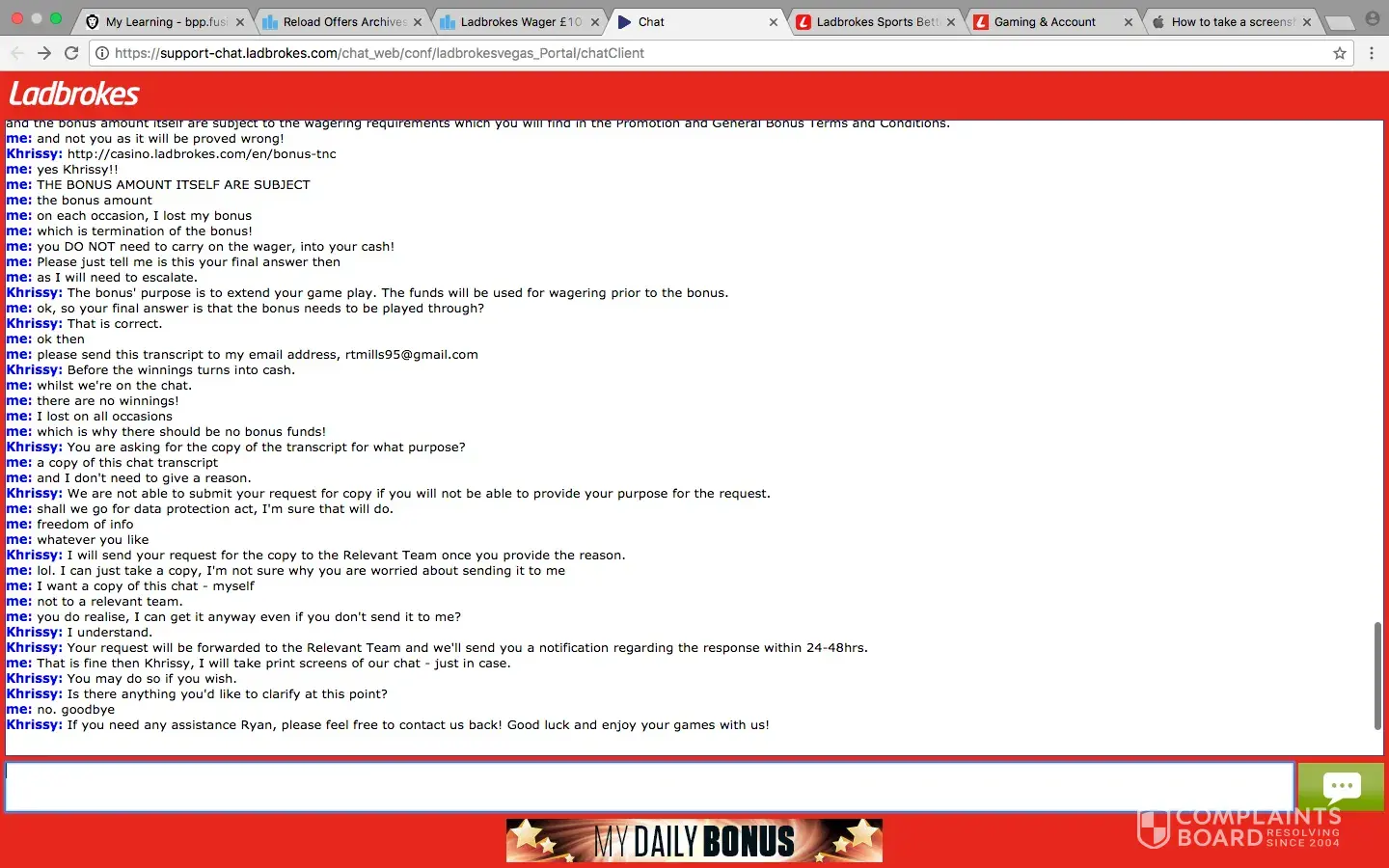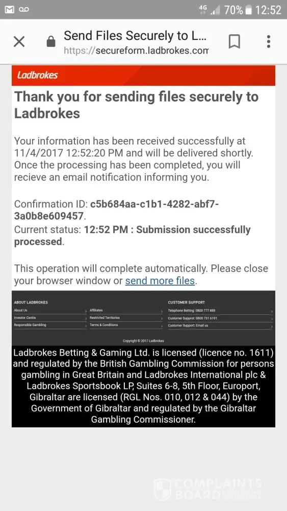 me: yes sending complaint to ladbrokes